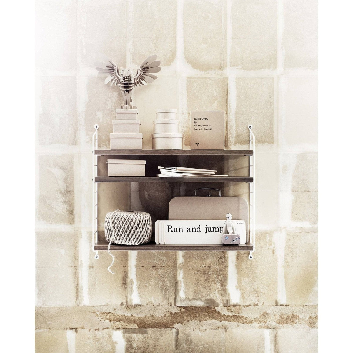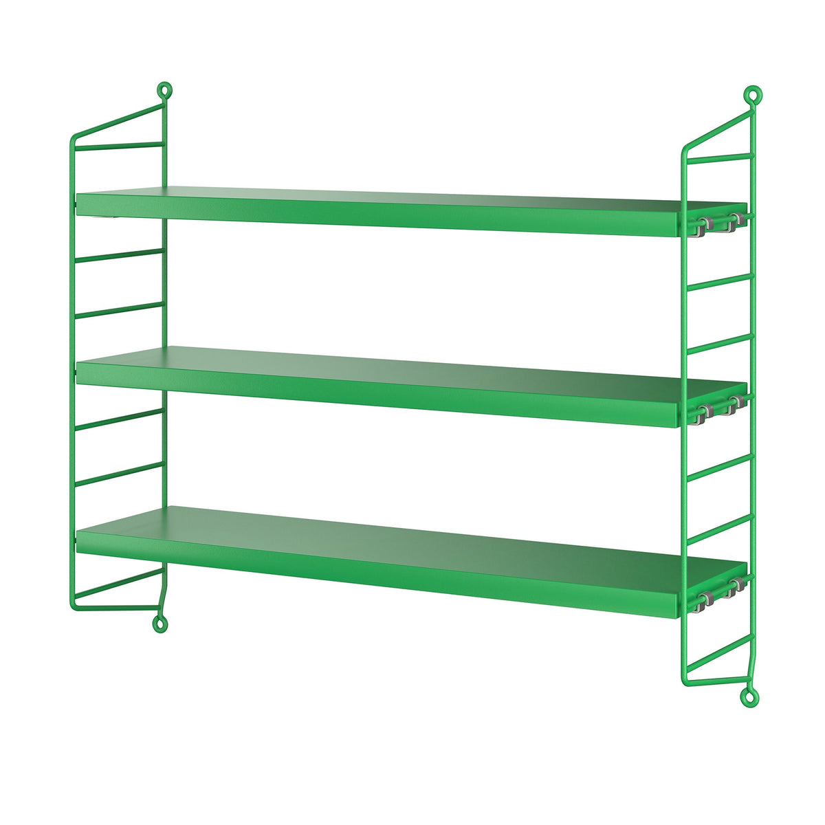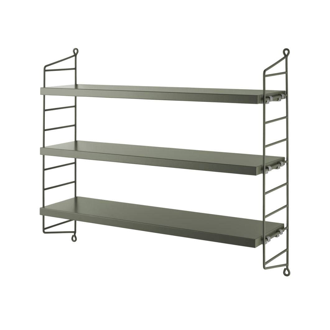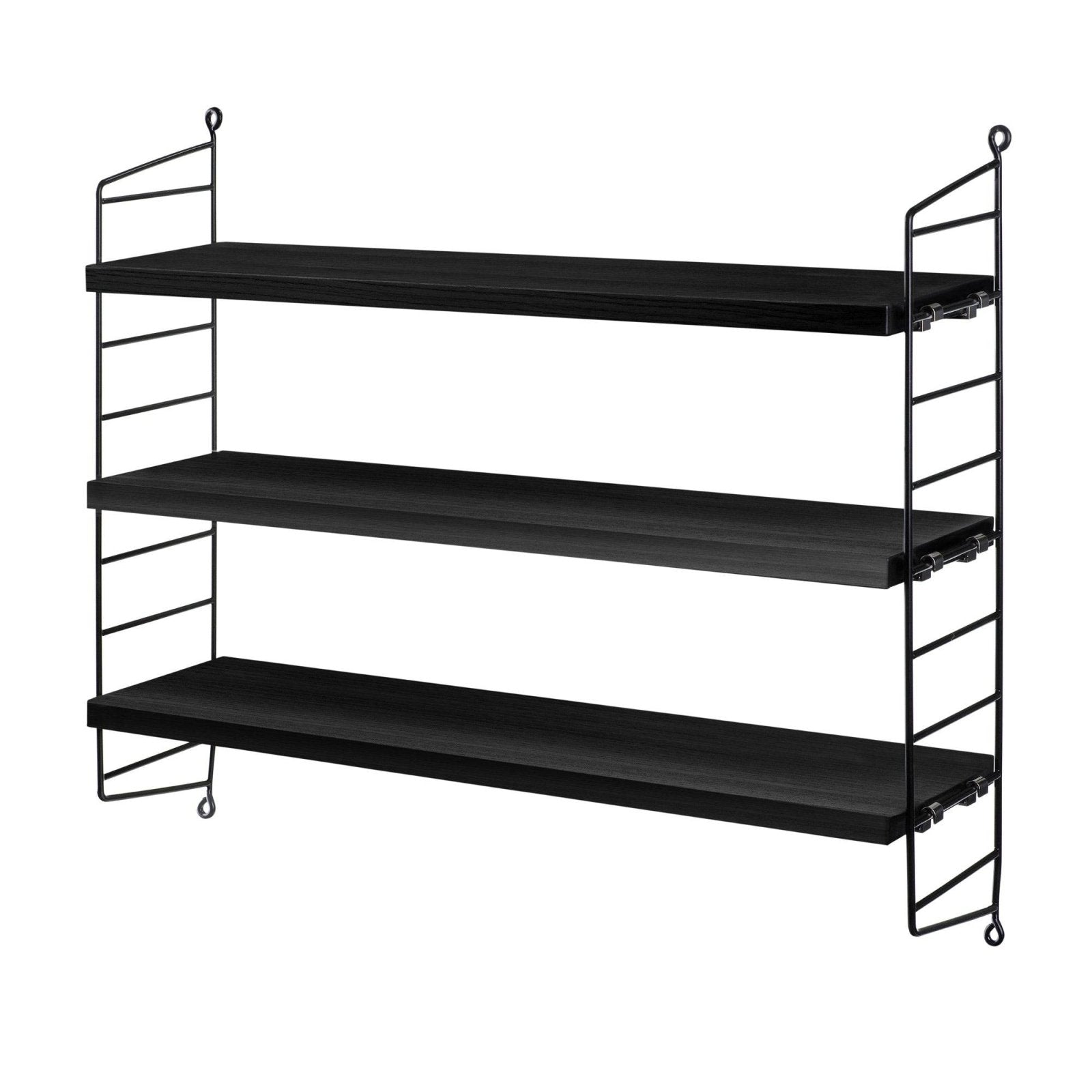 String® Pocket Shelving is sold as a complete shelf system, but is equally flexible as String® System. It invites creativity and personality where you can combine two or three String® Pocket shelves into one larger shelf.