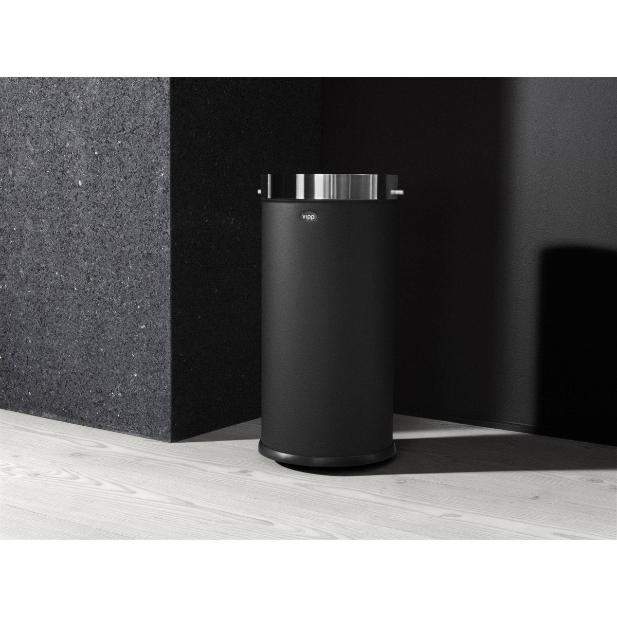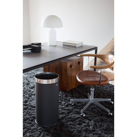 The Vipp office bin is equally suited for office spaces and for the home. The office bin features a stainless-steel construction and durable rubber wrapped in a timeless design. The office bin is fitted with discreet rubber wheels, and a hidden metal ring keeps the bin liner in place.