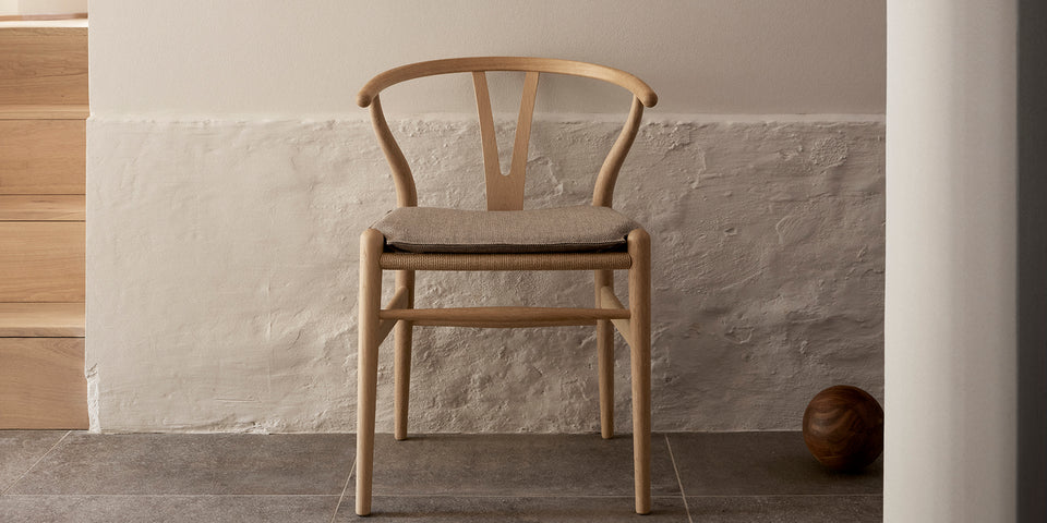 The very first model Hans J. Wegner designed exclusively for Carl Hansen & Søn in 1949, the CH24 or Wishbone Chair, has been in continuous production since its introduction in 1950. With a form that is uniquely its own, the back- and armrest are shaped into a single piece. To give stability to the steam-bent top and ensure comfortable support, Wegner developed the characteristic Y-shaped back that the Wishbone Chair is named after.