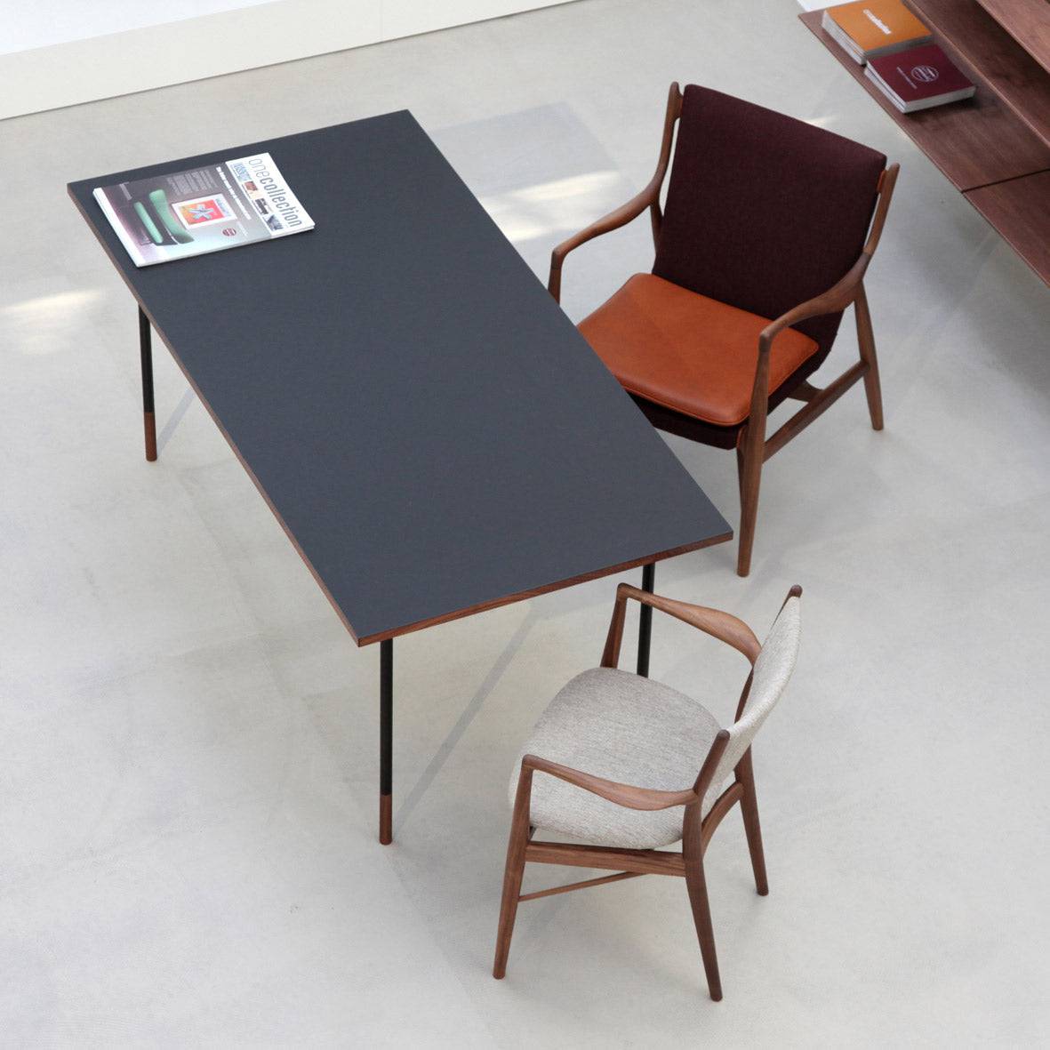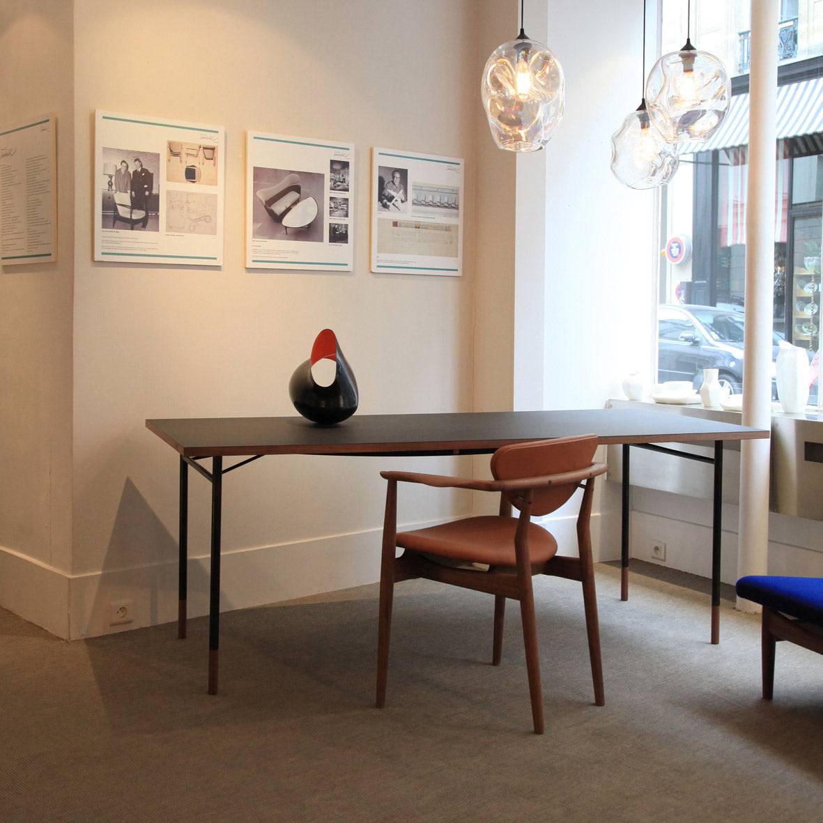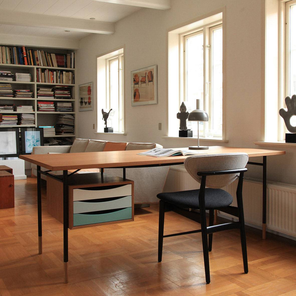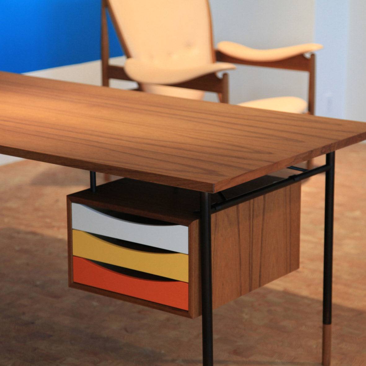 Finn Juhl designed a diverse range of furniture with frames of steel pipe during his working life. This was also the theme of the work tables for his first studio at Nyhavn 33, Copenhagen. As Finn Juhl in 1957 moved the studio to Sølvgade 38, these tables were still in use.