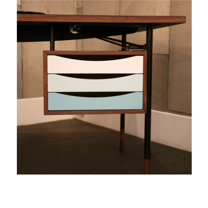 The cabinet was designed in 1953 as an addition to the Nyhavn Table from 1945 and had previously been produced by the firm BOVIRKE. The drawer cabinet is now relaunched by ONECOLLECTION.
