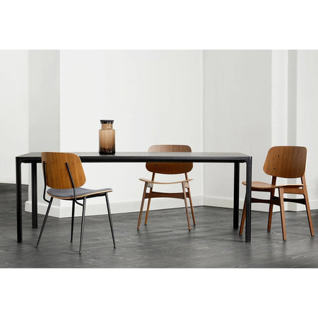 In Mesa, Welling/Ludvik have designed a table that is stripped of decoration and superfluous detail. Thanks to the simplicity of the design, this table blends seamlessly into any décor – no matter whether it is destined for use as a dining table, desk or conference table.