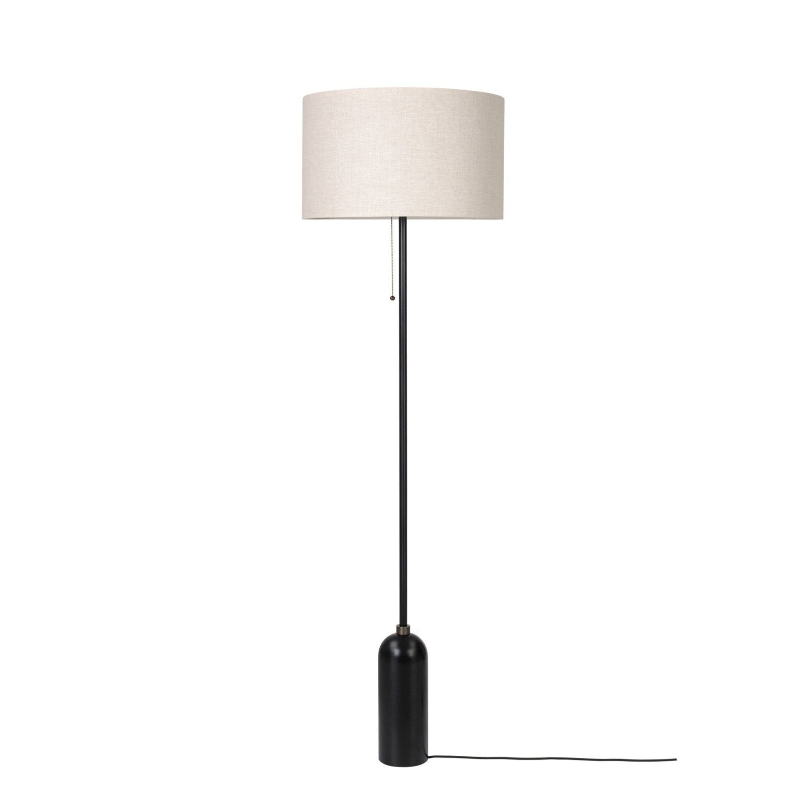 Taking its name from the lamp’s distinctive balance between the anchoring of the heavy, cylindrical base and the lightweight, airy shade, it beautifully merges into a sculptural whole.