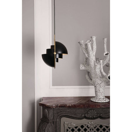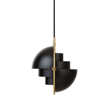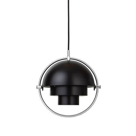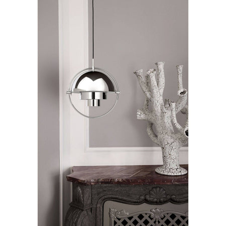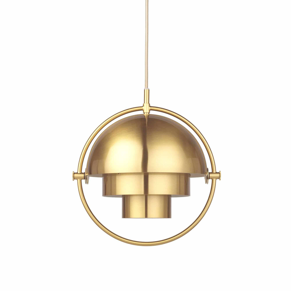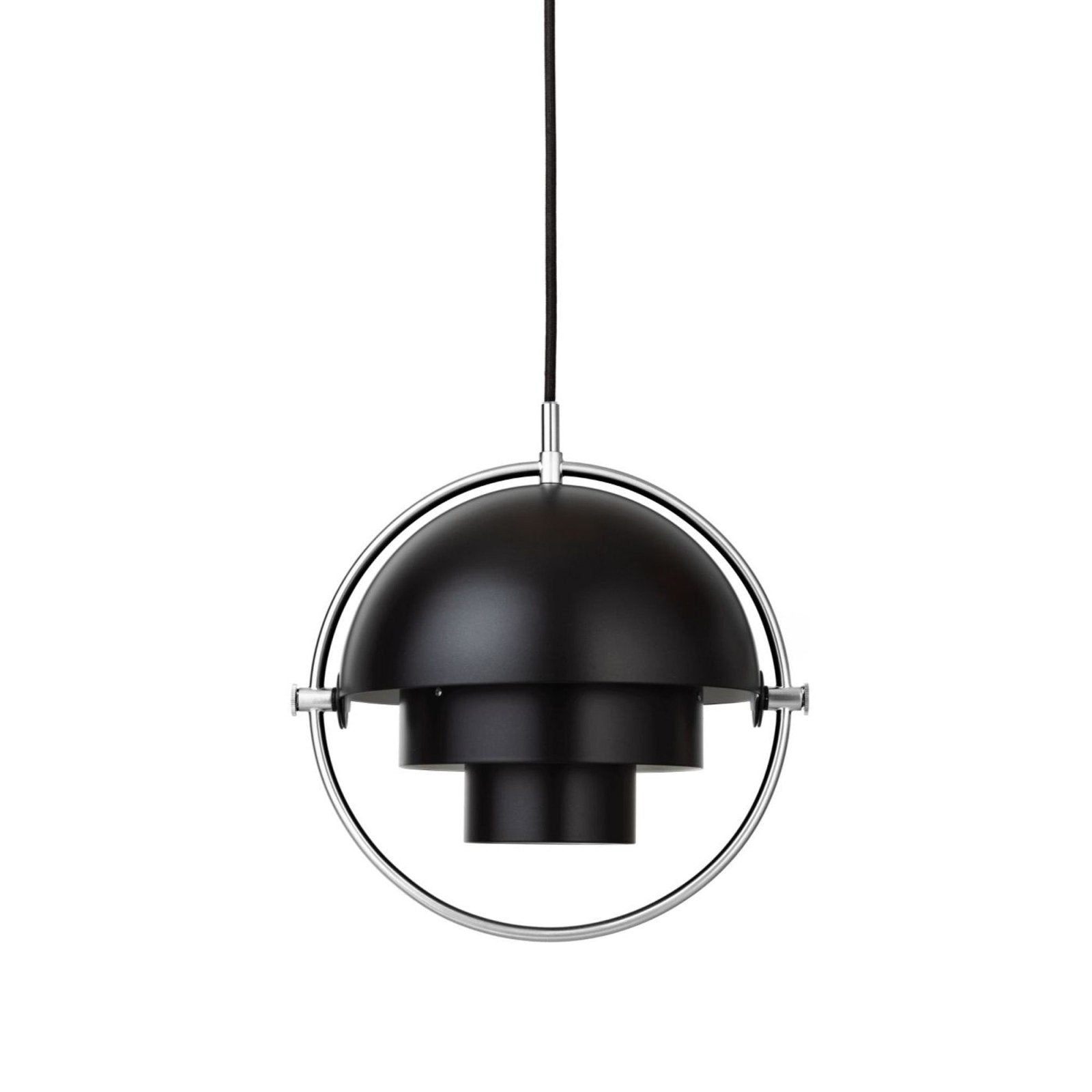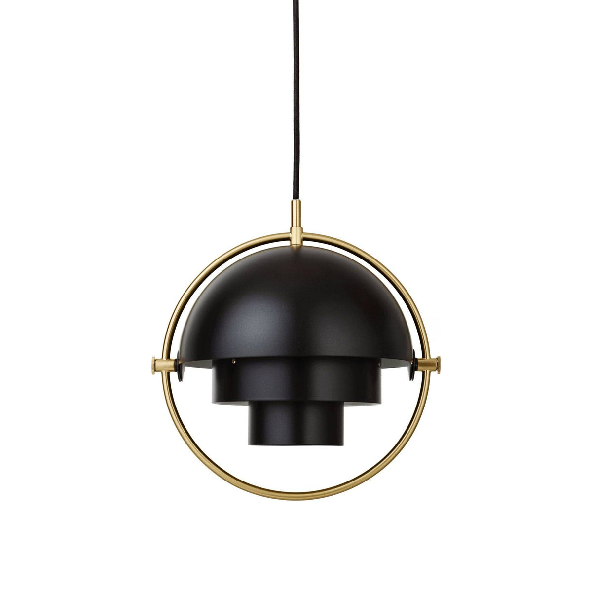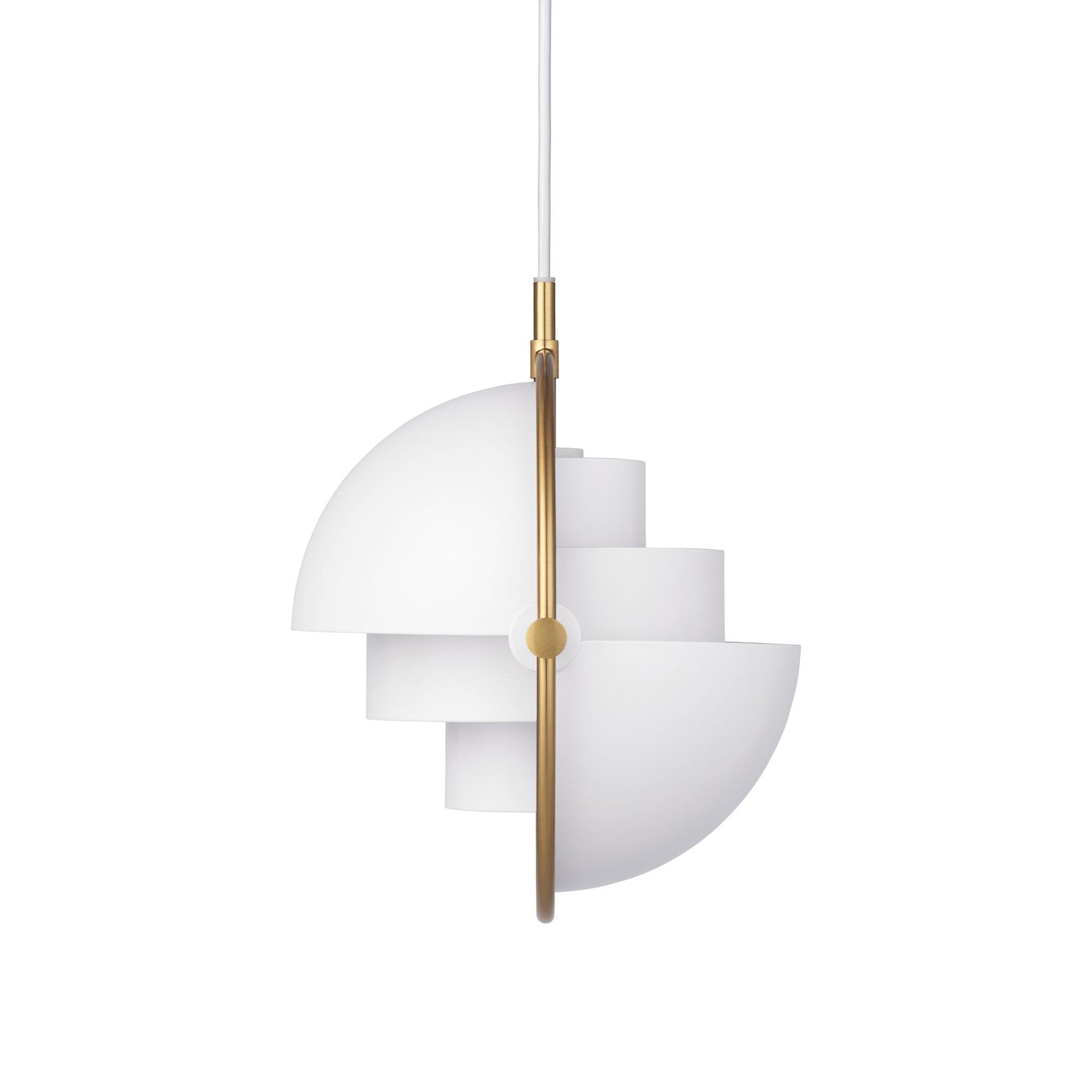 The small Multi-Lite Pendant embraces the golden era of Danish design with its characteristic shape of two opposing outside, mobile shades that enable creating a personal installation and a wide range of lighting values in a room. By individually rotating the shades, the Multi-Lite Pendant can be transformed into multiple combinations where the light can be directed upwards, downwards or exude an asymmetrical art light. The Multi-Lite was first drawn in 1972 when Louis Weisdorf did an exception to his own design custom of using multiple repeating elements. Instead it reflects his passion for diversity. Two cylindrical shapes lay the foundation of the lamp and a metal ring encompasses it and anchors the two quarter-spherical shades, which ultimately completes a picture of an iconic design with multiple purposes. The Multi-Lite Pendant has a timeless expression that fits into any domestic setting.