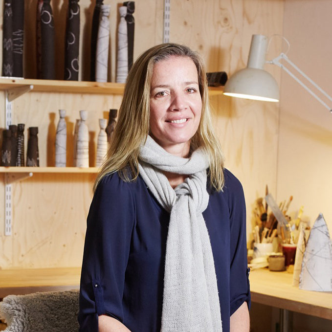 Naja Utzon Popov inherited her creative genes from her grandfather, Jørn Utzon, a Danish architect known for designing the iconic Sydney Opera House in Australia; her mother, prominent Danish artist Lin Utzon; and her father, acclaimed Australian architect Alex Popov. Naja's childhood years in Denmark have always been an important source of inspiration for her work, as were the years she spent in Australia studying drawing, painting and etching at the Julian Ashton Art School. After moving to England, Naja continued her formal artistic training at the University of Westminster School of Media Arts and Design. Today, she lives in her native Denmark and works out of her studio in Copenhagen. Thanks to her family background, Naja has always been exposed to contemporary design. These influences find expression in her work, where she translates her encounters with nature into textiles, glassware, ceramics and sculptures. By adding her own personal touch to works that beautifully combine contemporary design with Mother Nature's gifts, Naja carries on the family tradition of creating outstanding art. Naja's approach has brought her great success and her designs have been well received in New York at the International Contemporary Furniture Fair (ICFF), where she exhibited a large-scale clay installation that was purchased by the iconic Saks Fifth Avenue department store. Her glass and ceramic designs appear all over the world, including at the Feng Sushi restaurant chain in London and galleries, such as the Galeria Kunstmann in Mallorca.