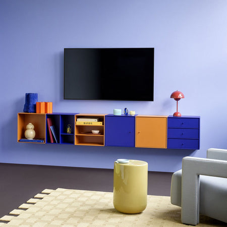 This Montana Mini has three horizontal divisions – perfect for storage of magazines and papers. The module can be flipped if you wish the divisions to be vertical in order to change the function of the module. Choose the module in one of the series' 10 selected lacquer colours from the Montana colour palette.