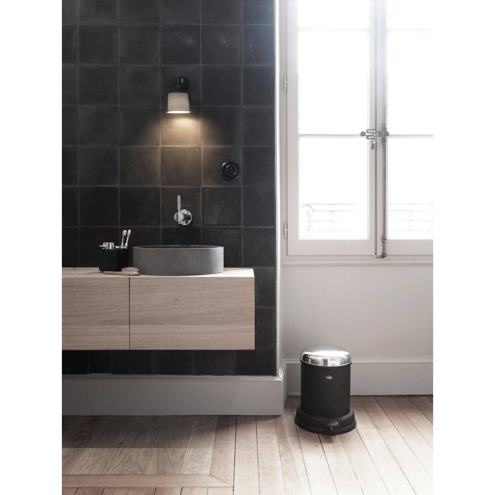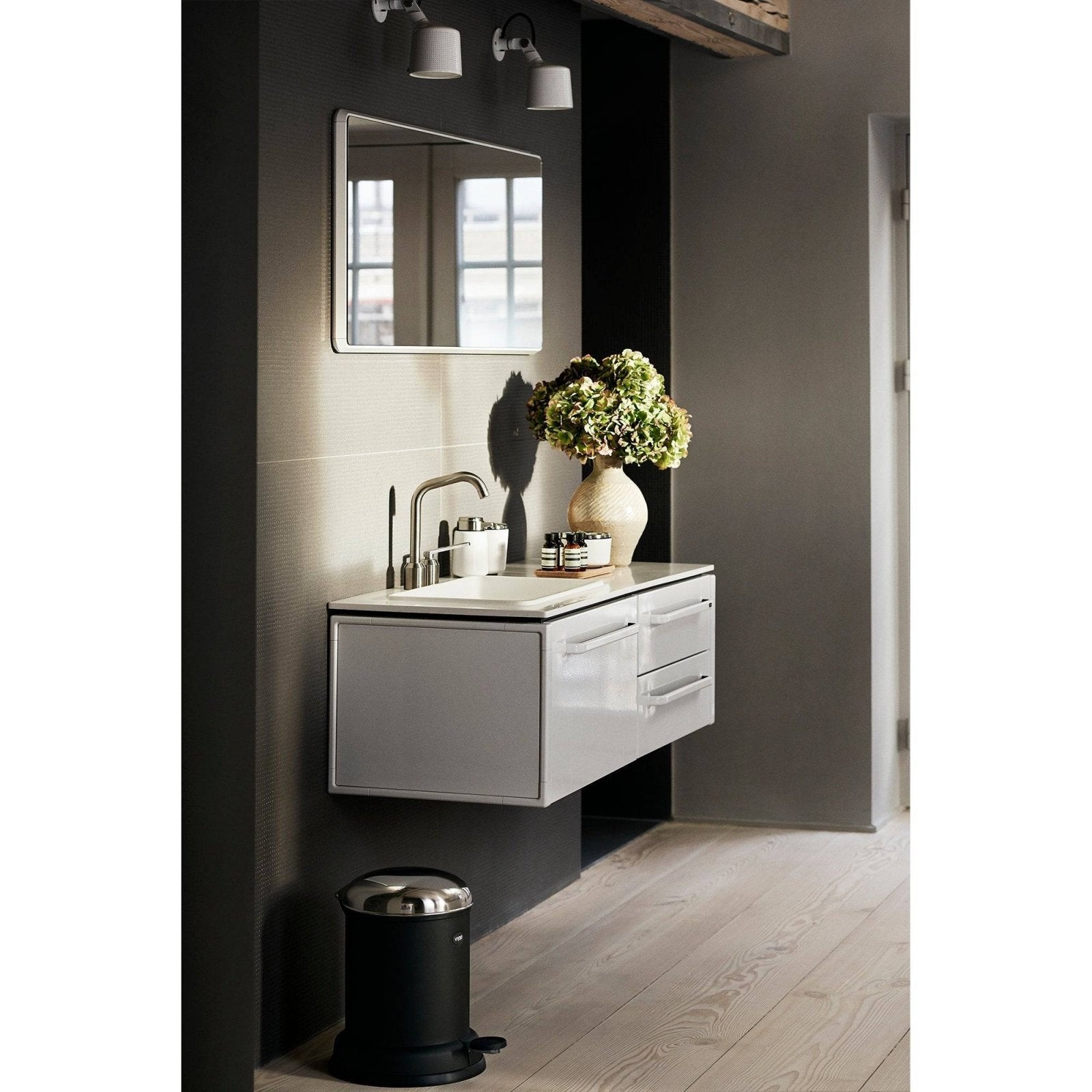 Being the smallest of their bins, the Vipp13 pedal bin requires minimal space and thrives well in smaller bathrooms.