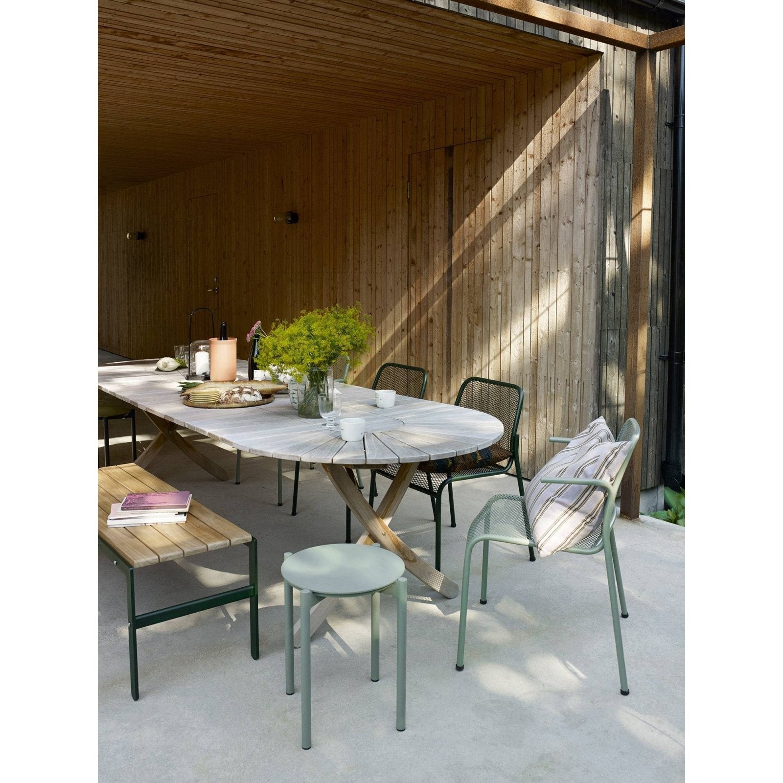 Part of a series: Complements Selandia chairs, benches, and armchairs for a cohesive outdoor setting.