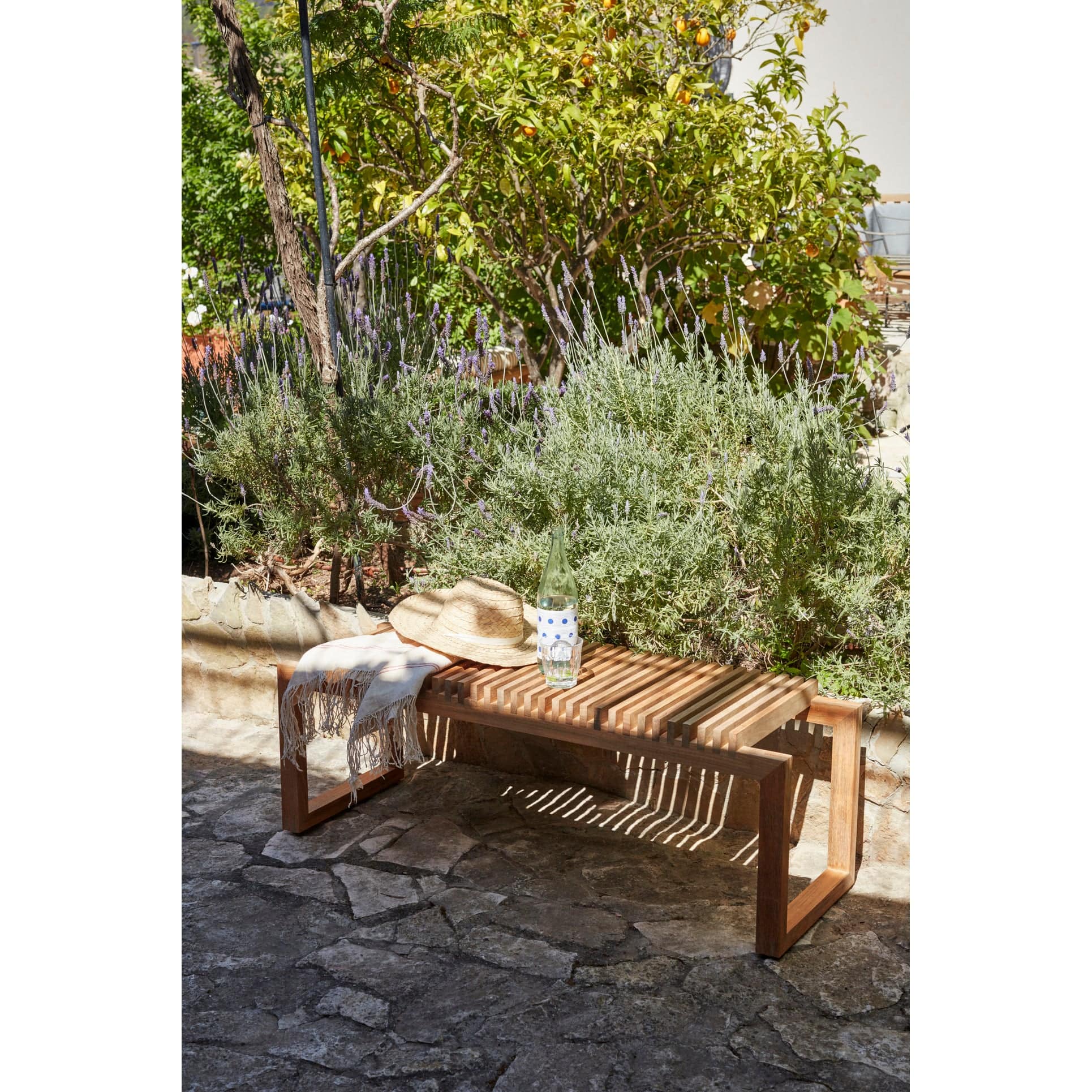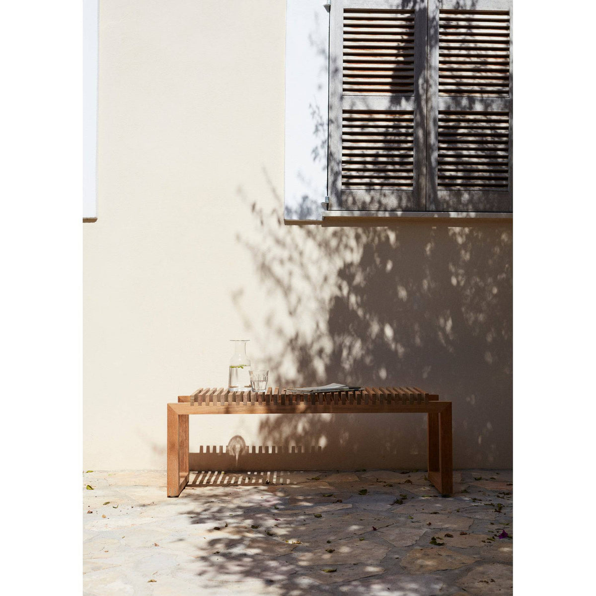 The Cutter Bench by Skagerak by Fritz Hansen was originally designed by Niels Hvass for the exhibition Walk the Plank. Drawing inspiration from the German Bauhaus movement, the design brings the idea of a slatted seat on a coherent frame to life. With its minimalist expression, the Cutter Bench fits effortlessly into almost any environment, indoors or outdoors. Whether placed at the façade of a house, in the garden, hallway, or bathroom, it serves as both a practical seat and a stylish surface for storage. Crafted from carefully selected European oak that is FSC-certified or FSC mix certified, it embodies sustainable design and uncompromising craftsmanship.