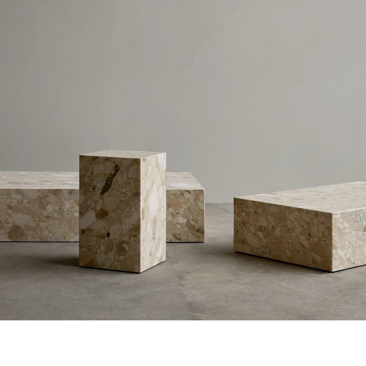 A supersized version of the classic Plinth Low podium by MENU, the Plinth Grand is a monumental and multifunctional design. Designed by Norm Architects and offered in four marble types with unique veining as well as Kunis Breccia stone, each piece is carefully assembled by hand for the perfect alignment.