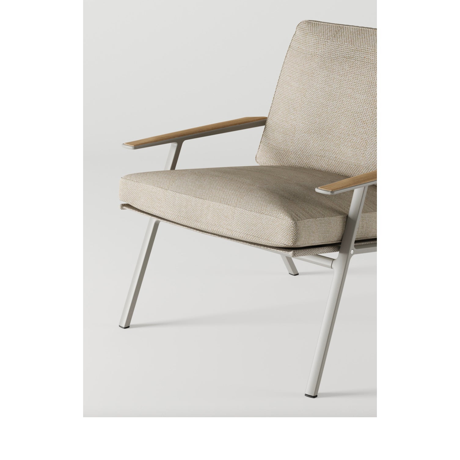 • Natural details: Rounded teak elements on the armrests add warmth and contrast to the sleek frame.