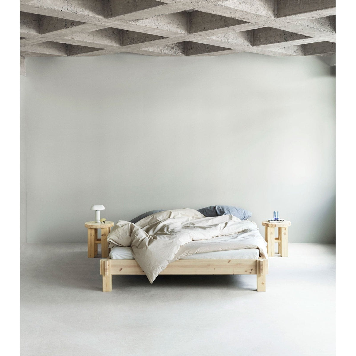 The allure of the Notch Bed Frame extends far beyond its initial impression. Over time, the durable and welcoming appeal of the pine wood will develop a stunning patina, further enhancing its natural charm. To prevent excessive discoloration and to ensure additional durability, each plank is carefully lacquered with a clear, matte UV varnish, providing protection from the sun's rays while preserving the wood's innate beauty.