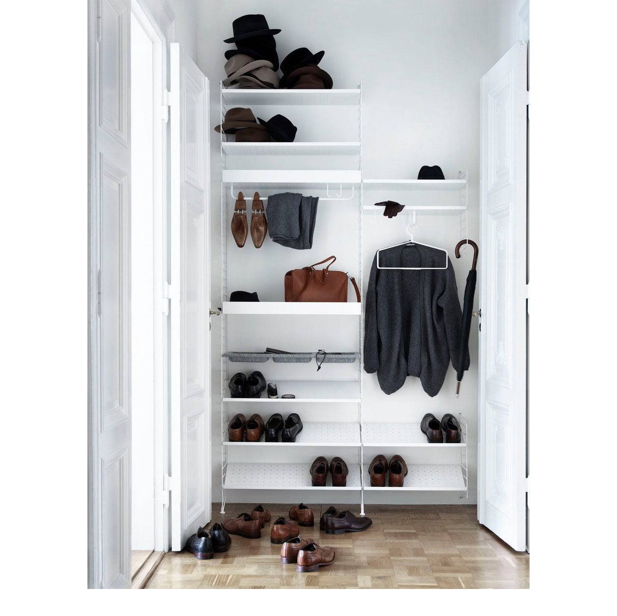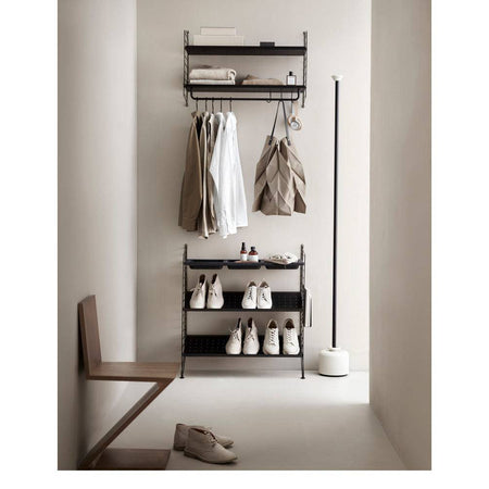 The coat-hanger is part of String's range of accessories and was created to be able to offer a complete storage solution for your hallway and wardrobe, where rods often are added.