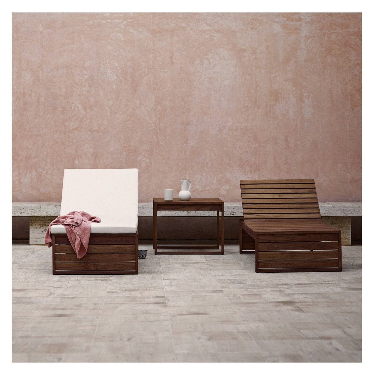 The sunbed is part of Kjær’s Indoor-Outdoor Series, inspired by Cubist forms and modern architecture.