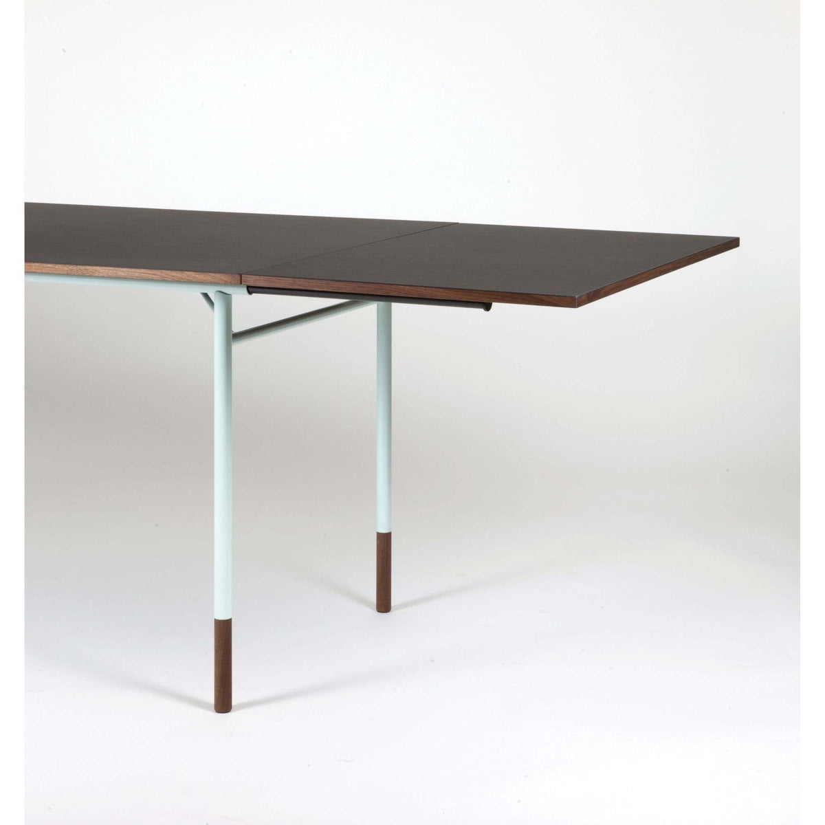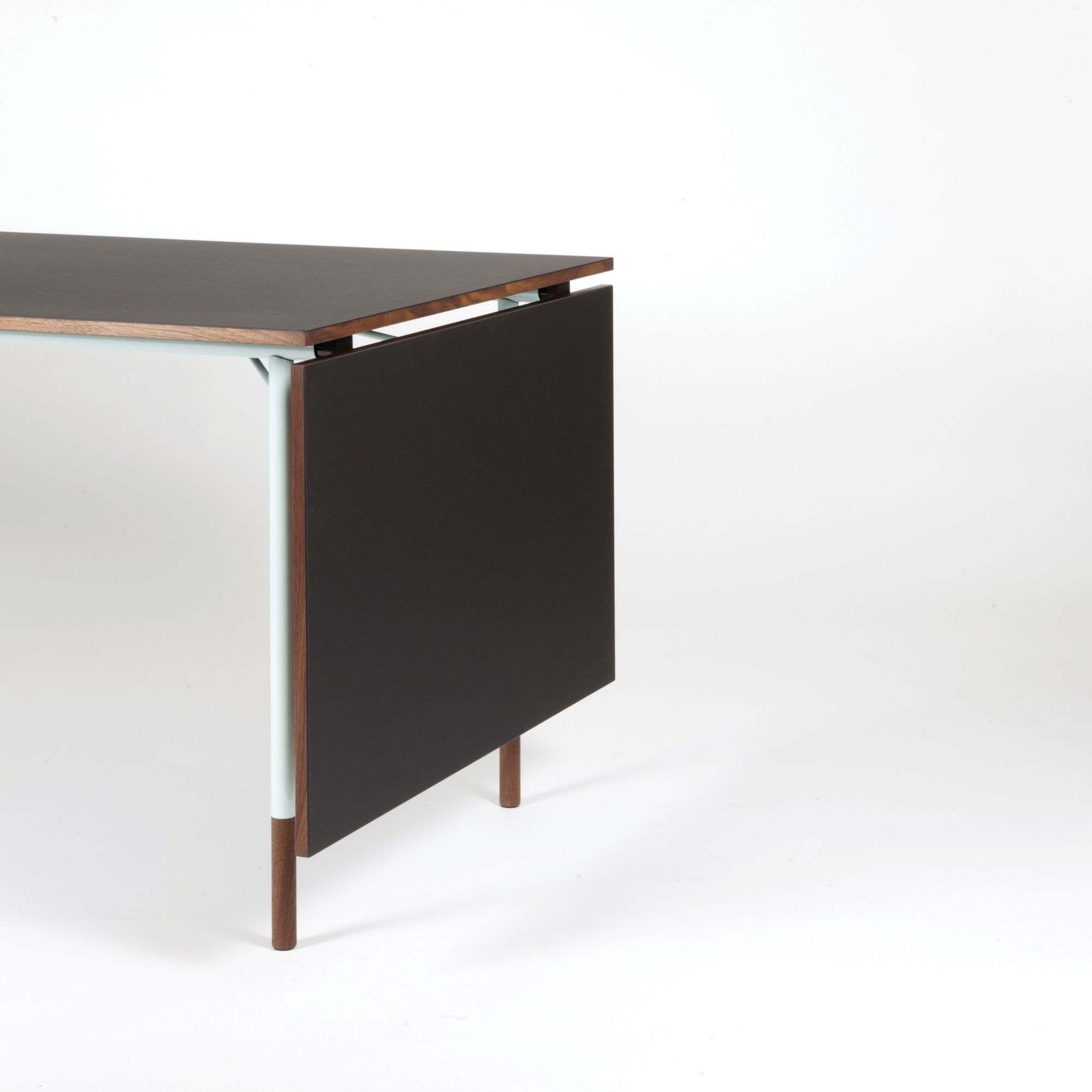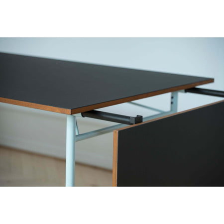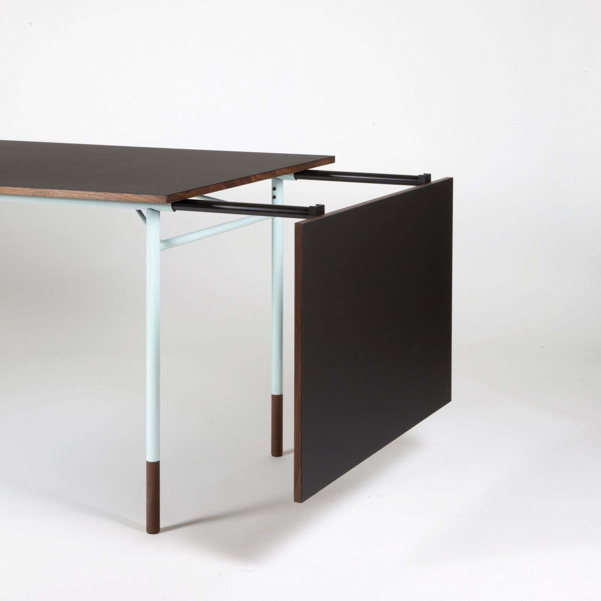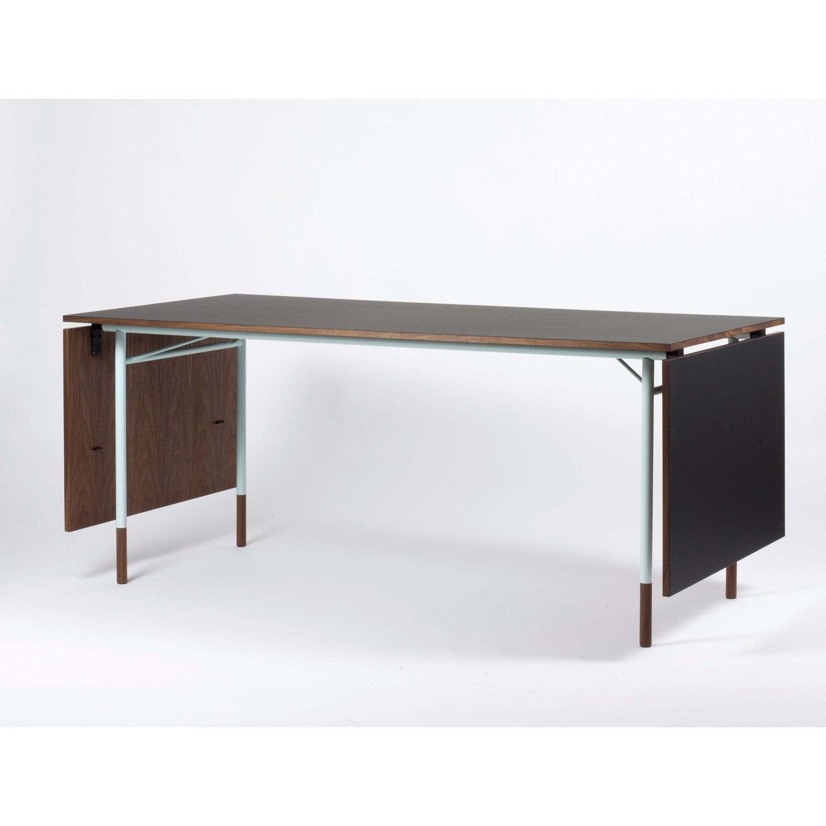 A design from the 1950s, a beautifully bright orange frame unites with walnut wood and black linoleum to form both a playful and sophisticated design that can stand the test of time. Designed to adapt to your space, the dining table is defined by special brackets that allow for two drop leaves to hang vertically at both ends, allowing for you to easily minimise and maximise your dining environment for changing purposes and occasions. A unique design bursting with intricate detail and character, the Nyhavn Dining Table is both a practical piece and elegant design statement all in one.