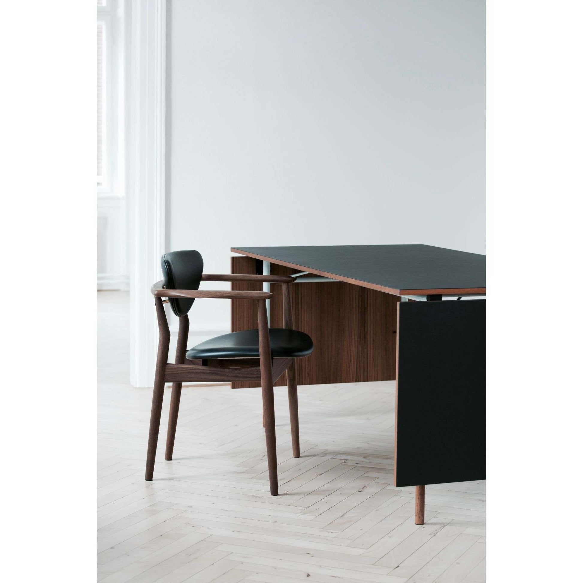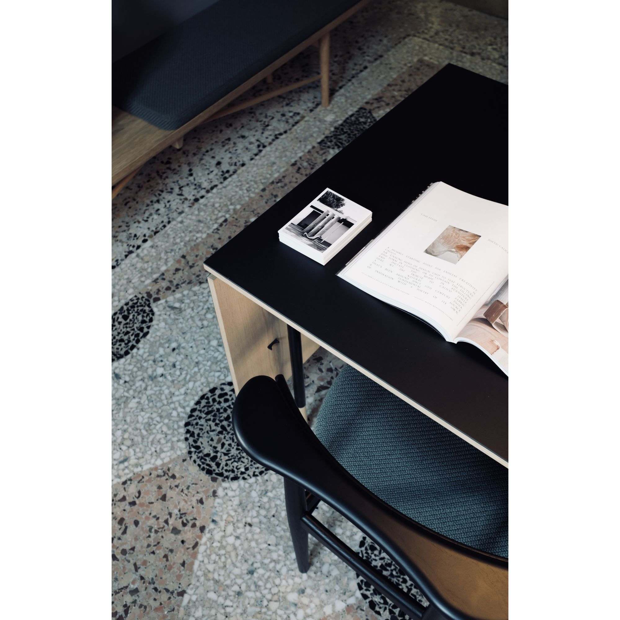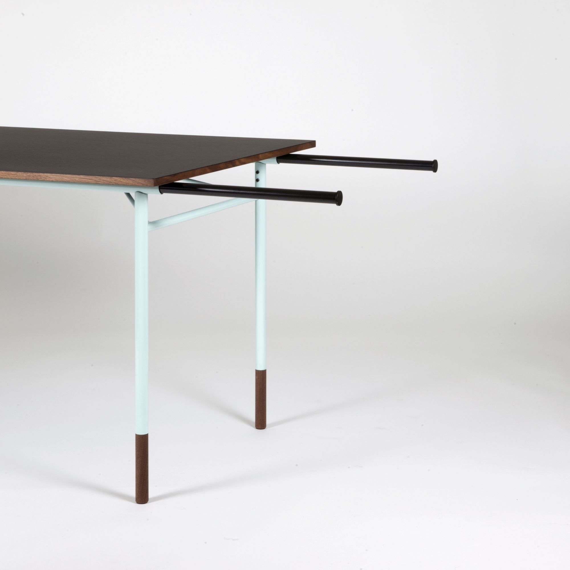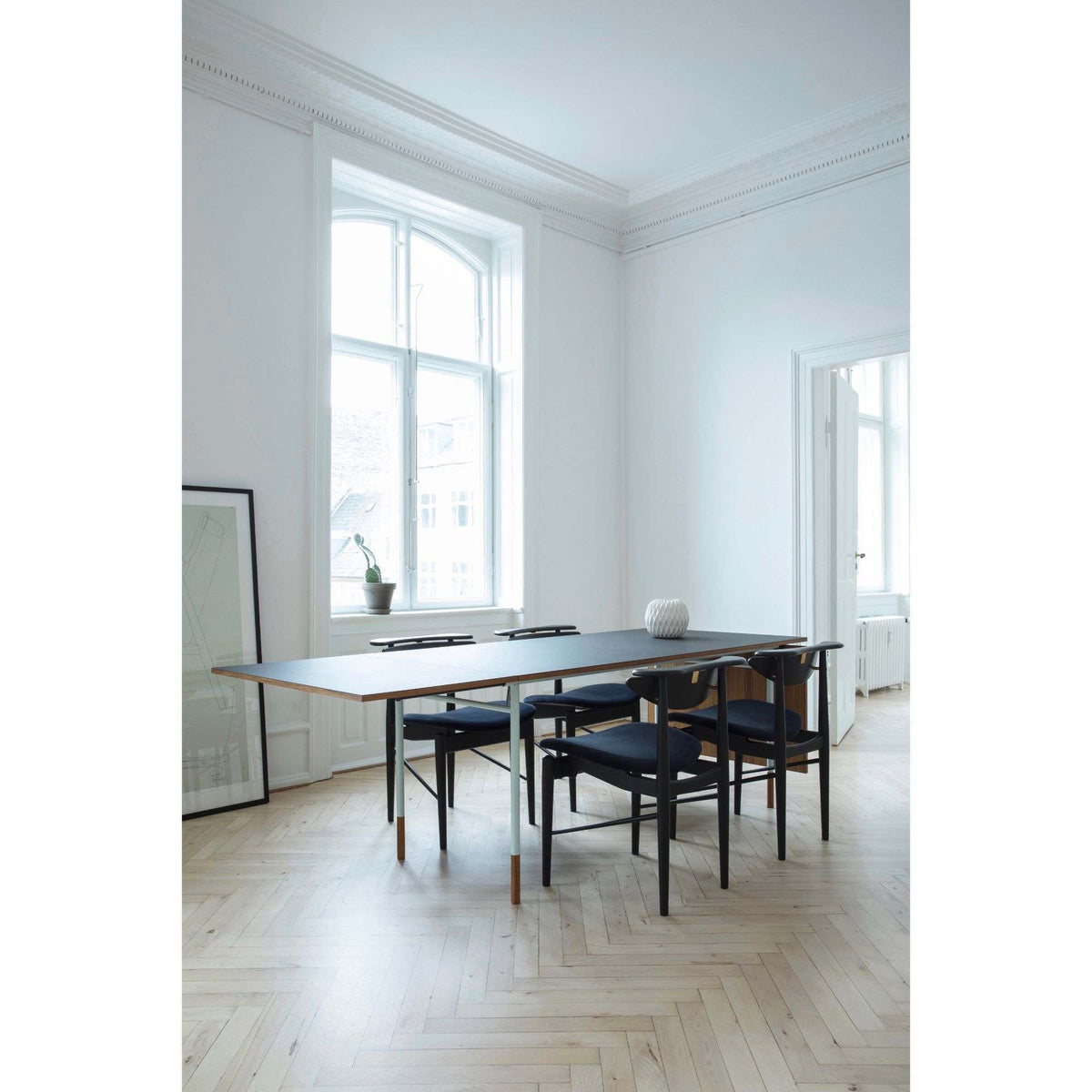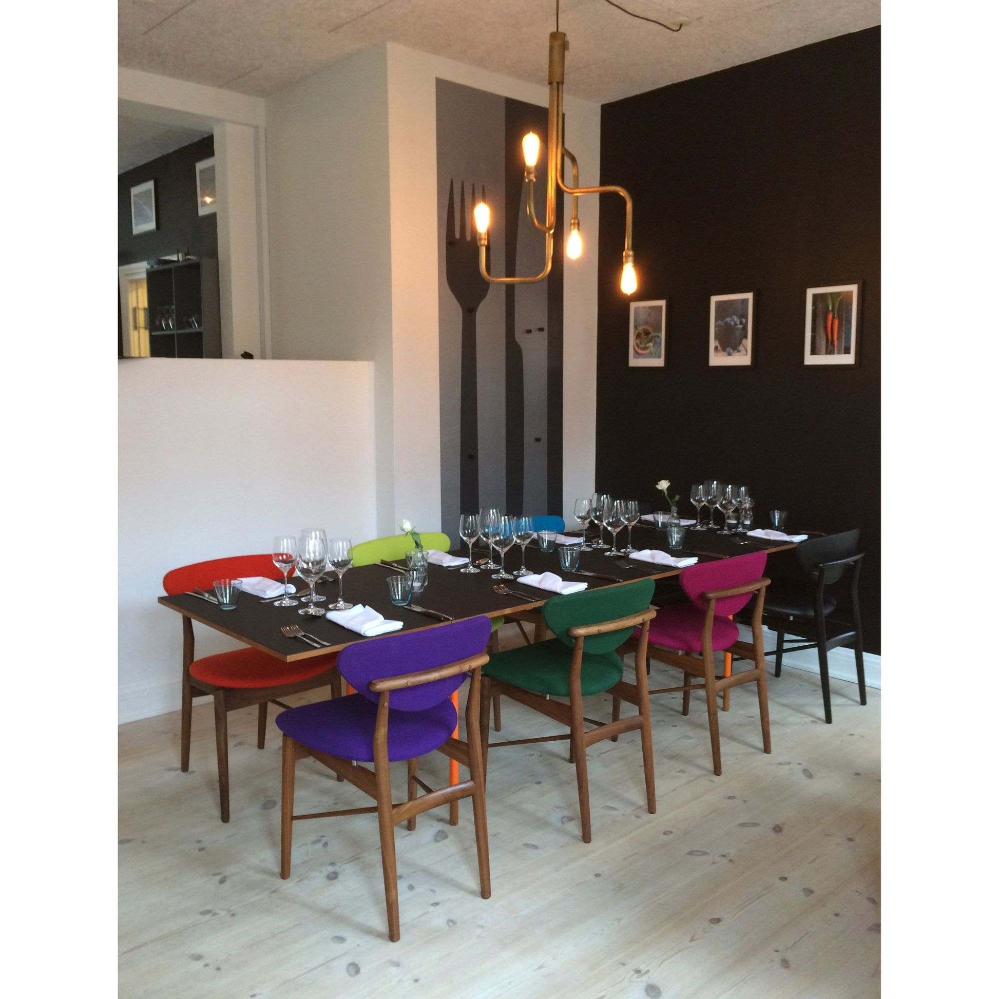 A design from the 1950s, a beautifully bright orange frame unites with walnut wood and black linoleum to form both a playful and sophisticated design that can stand the test of time. Designed to adapt to your space, the dining table is defined by special brackets that allow for two drop leaves to hang vertically at both ends, allowing for you to easily minimise and maximise your dining environment for changing purposes and occasions. A unique design bursting with intricate detail and character, the Nyhavn Dining Table is both a practical piece and elegant design statement all in one.