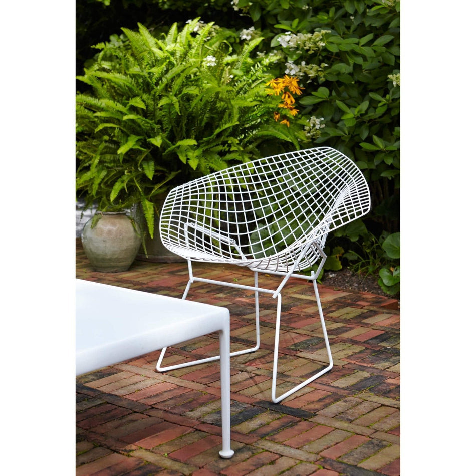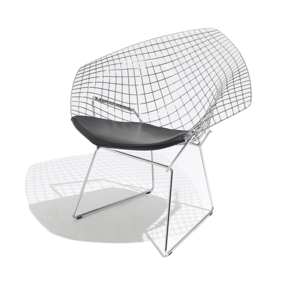 In 1950, he moved to Pennsylvania, to establish a studio, and to work with Hans and Florence Knoll. During this period he designed five wire pieces that became known as the Bertoia Collection for Knoll, among them the famous Diamond chair. In Bertoia's own words, If you look at these chairs, they are mainly made of air, like sculpture. Space passes right through them.