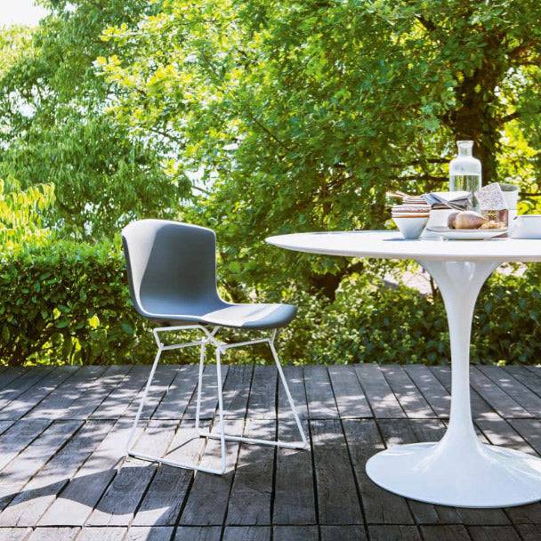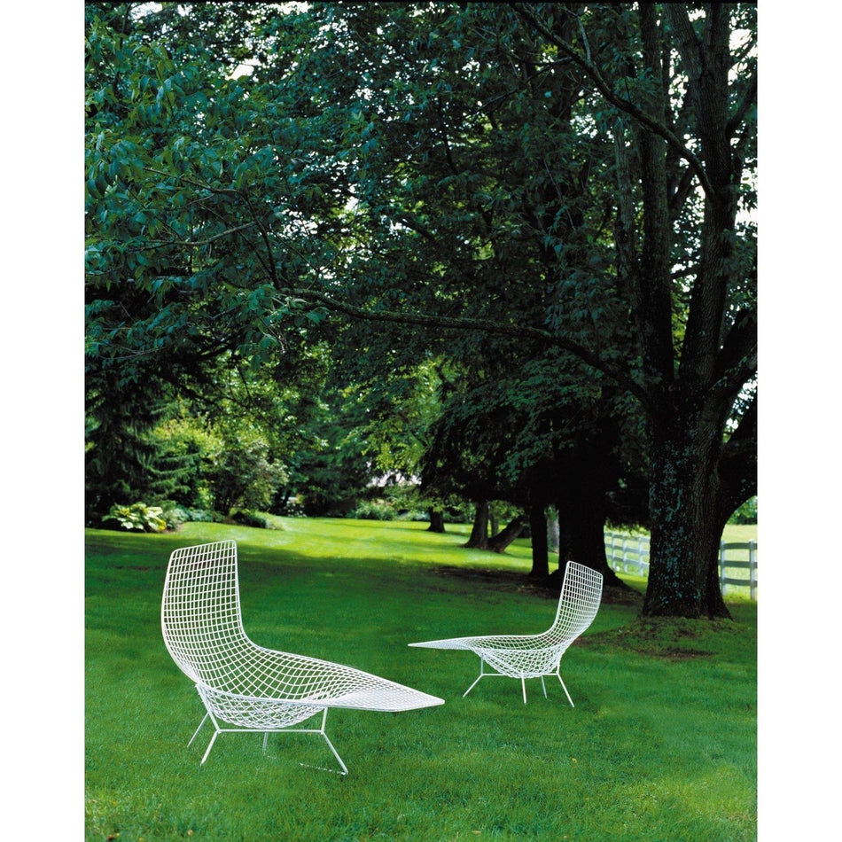 Unfortunately, the chair edge utilized two thin wires welded on either side of the mesh seat. This design had been granted a patent to the Eames for the wire chair produced by Herman Miller, who took Knoll to court and won. Bertoia & Knoll redesigned the seat edge, using a thicker, single wire, the same way the chairs are produced today.
