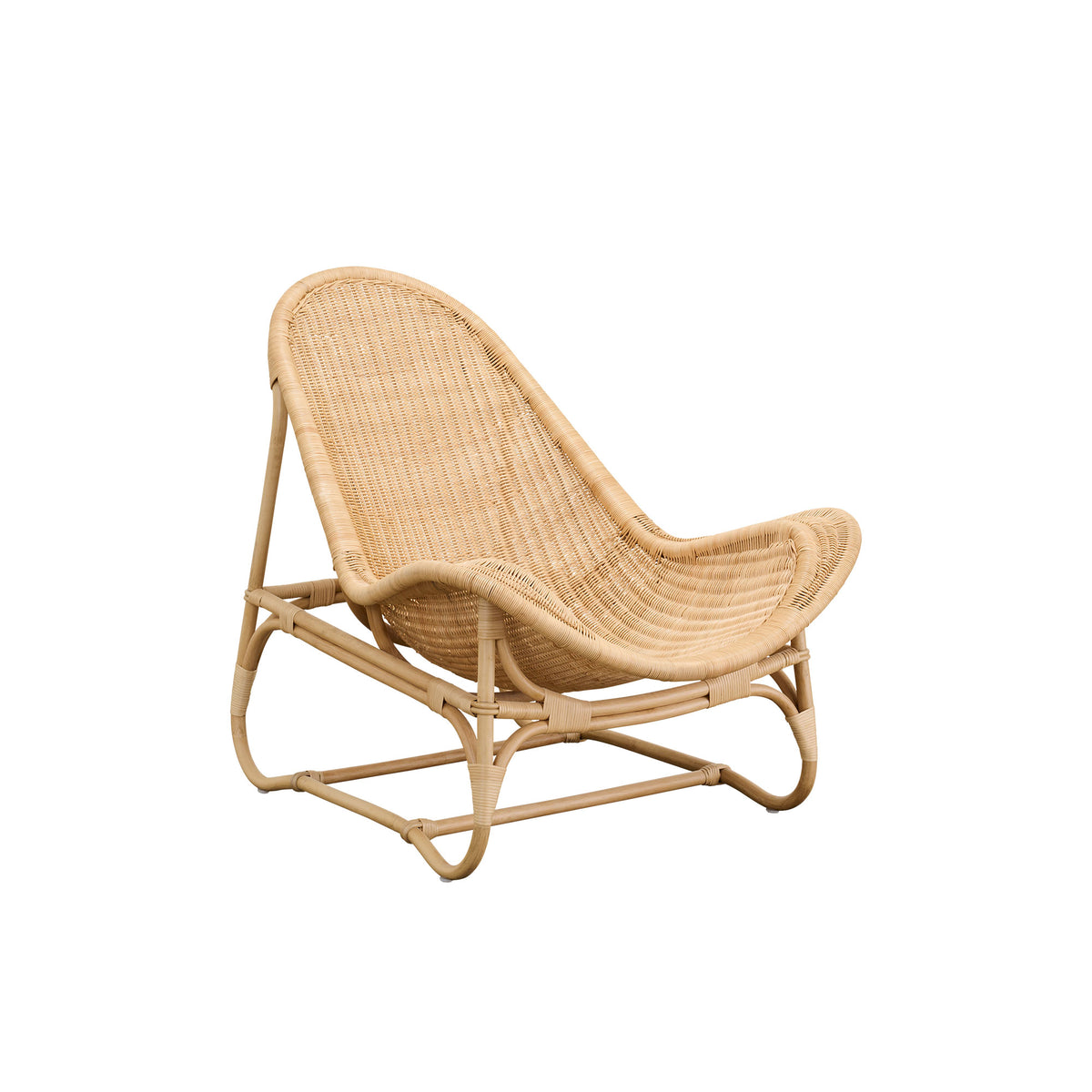 The Pacifique Lounge Chair was designed by Michel Buffet in 1954. It is handcrafted in rattan with beautiful woven details along the chair's armrests. The original name of the chair was 'Relaxation chair' describing how the lounge chair invites to pure relaxation when leaning back into the big embracing chair.
