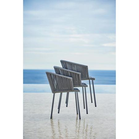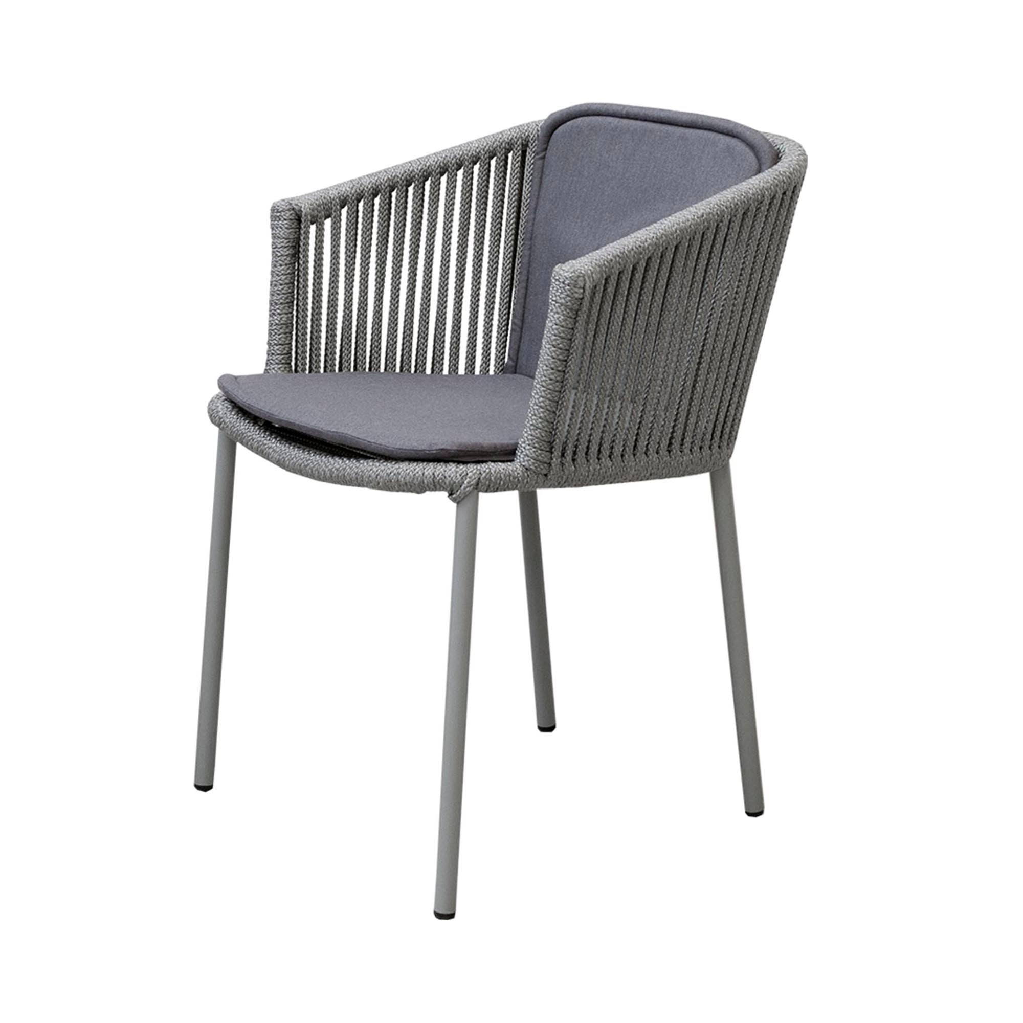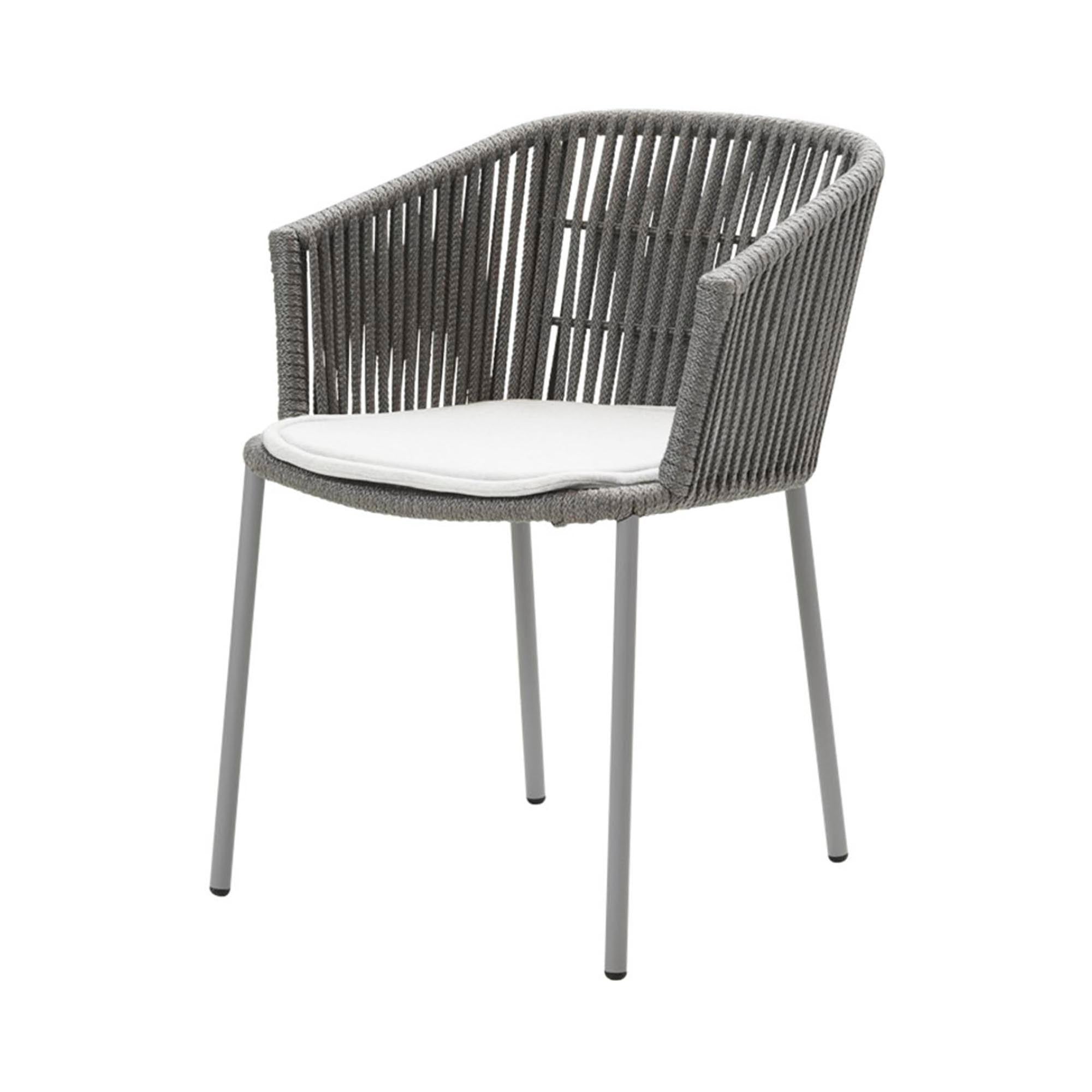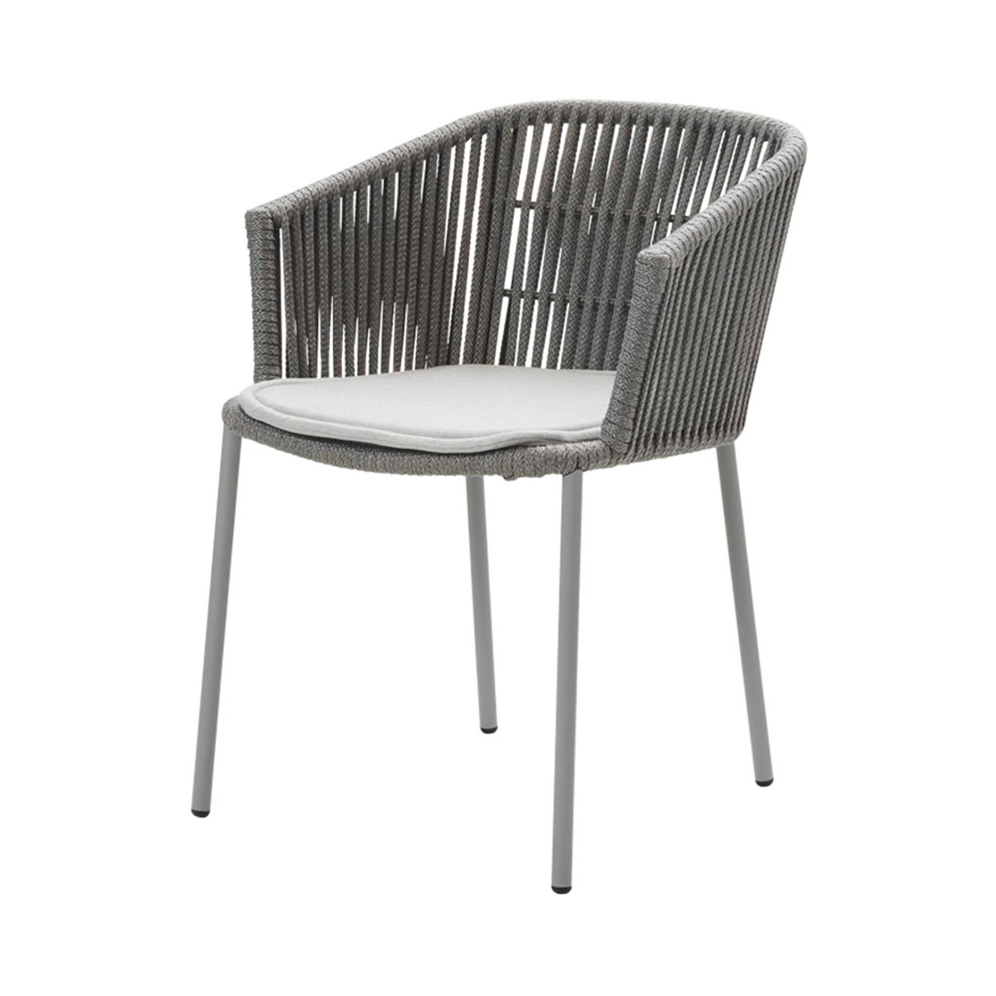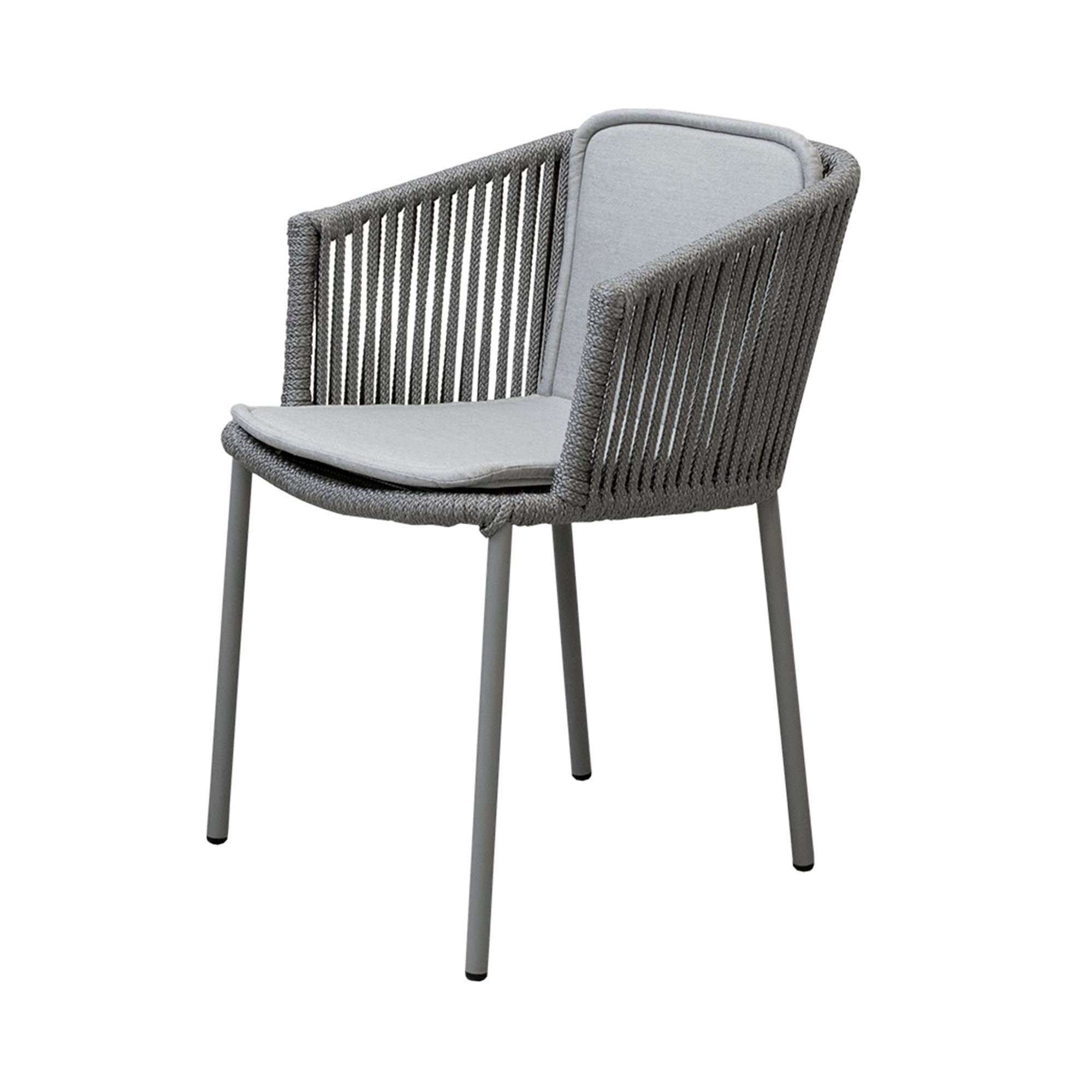 The elegant Moments armchair is designed by the Danish design duo Foersom & Hiort-Lorenzen MDD. Moments consists of a strong steel frame and a seat handwoven in soft and weatherproof Cane-line Soft Rope. The seat has an impressive and transparent design expression, which is beautiful to look at from any angle. Moments armchair oozes of Nordic clean lines and Scandinavian design at its best. A stylish armchair for the modern outdoor space. The cushions are produced in soft Cane-line fabrics. The Moments chair is stackable, and therefore does not take up a lot of space when stored.