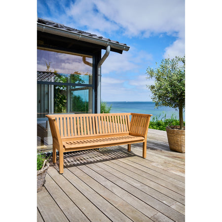 The St Catherine Bench is made of teak wood which known for its high strength and beautiful glow. Due to its natural oil content, the wood is very durable and resistant to wind and weather, and is not attacked by insects and rot.