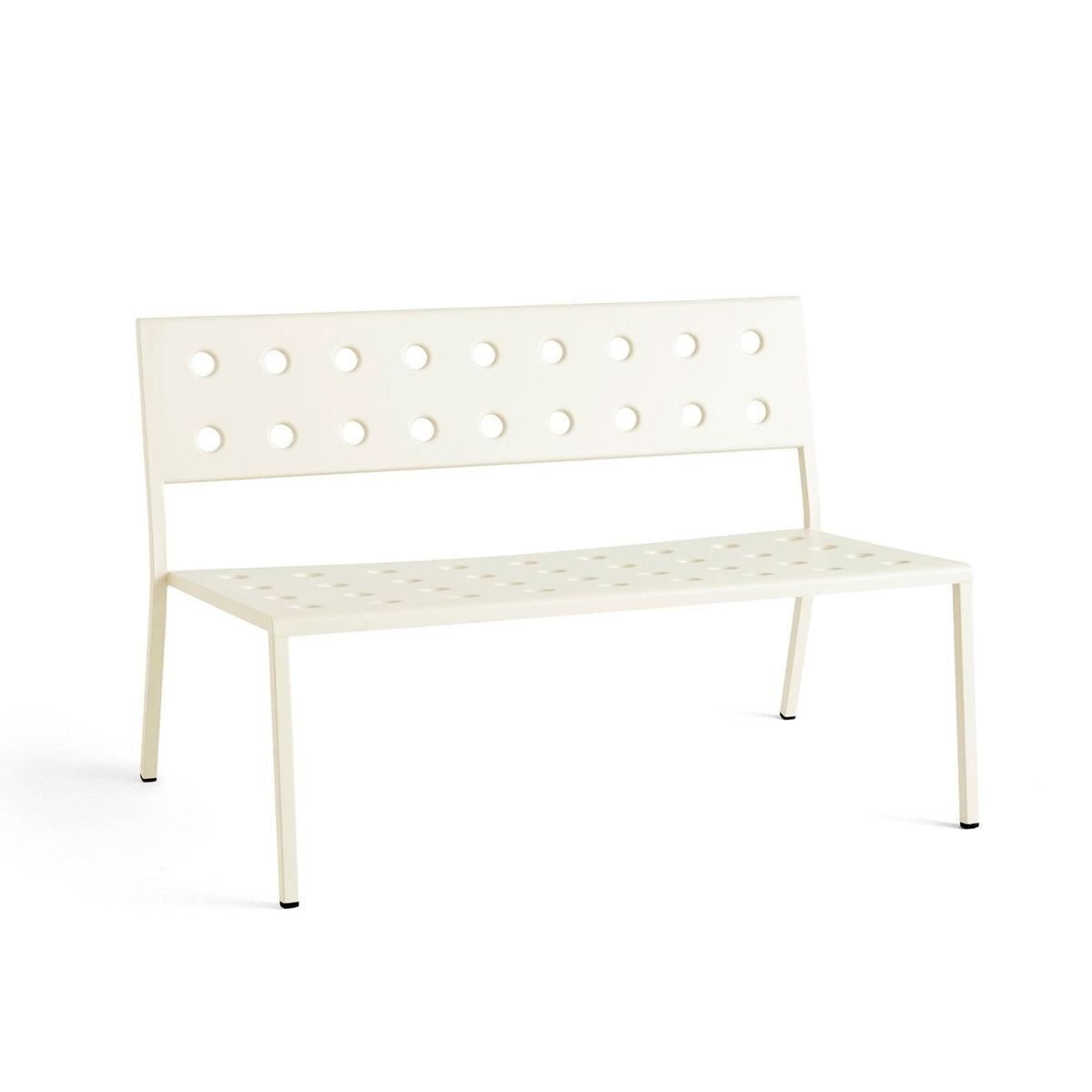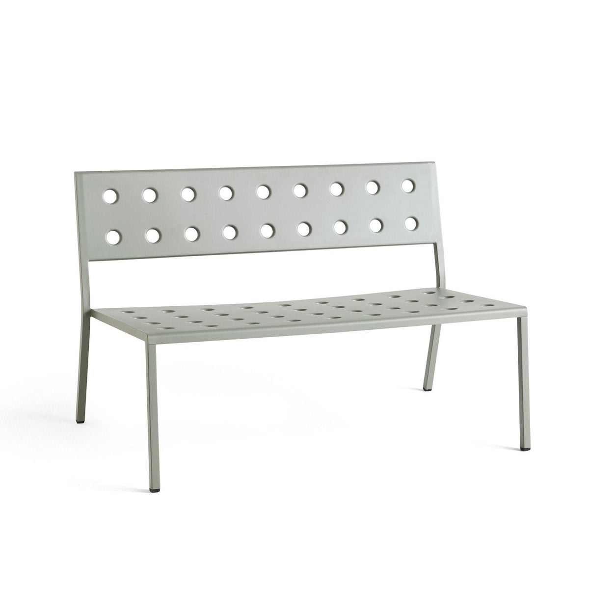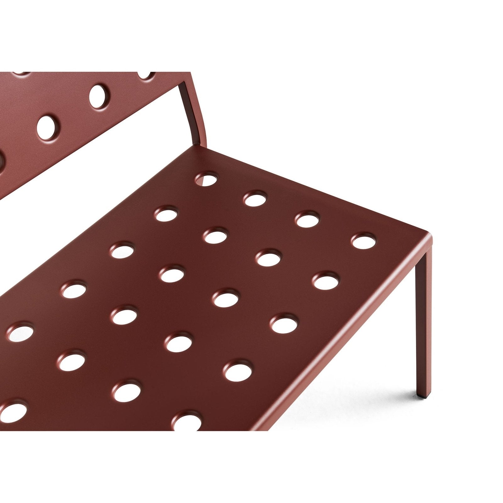 Designed for HAY by Ronan and Erwan Bouroullec, the Balcony Lounge Bench is an elegant and comfortable seating solution for outdoor use. The simple rectangular design is softened by the slender legs, with the multiple holes in the wide seat and back strengthening the construction, as well as creating a distinct expression.