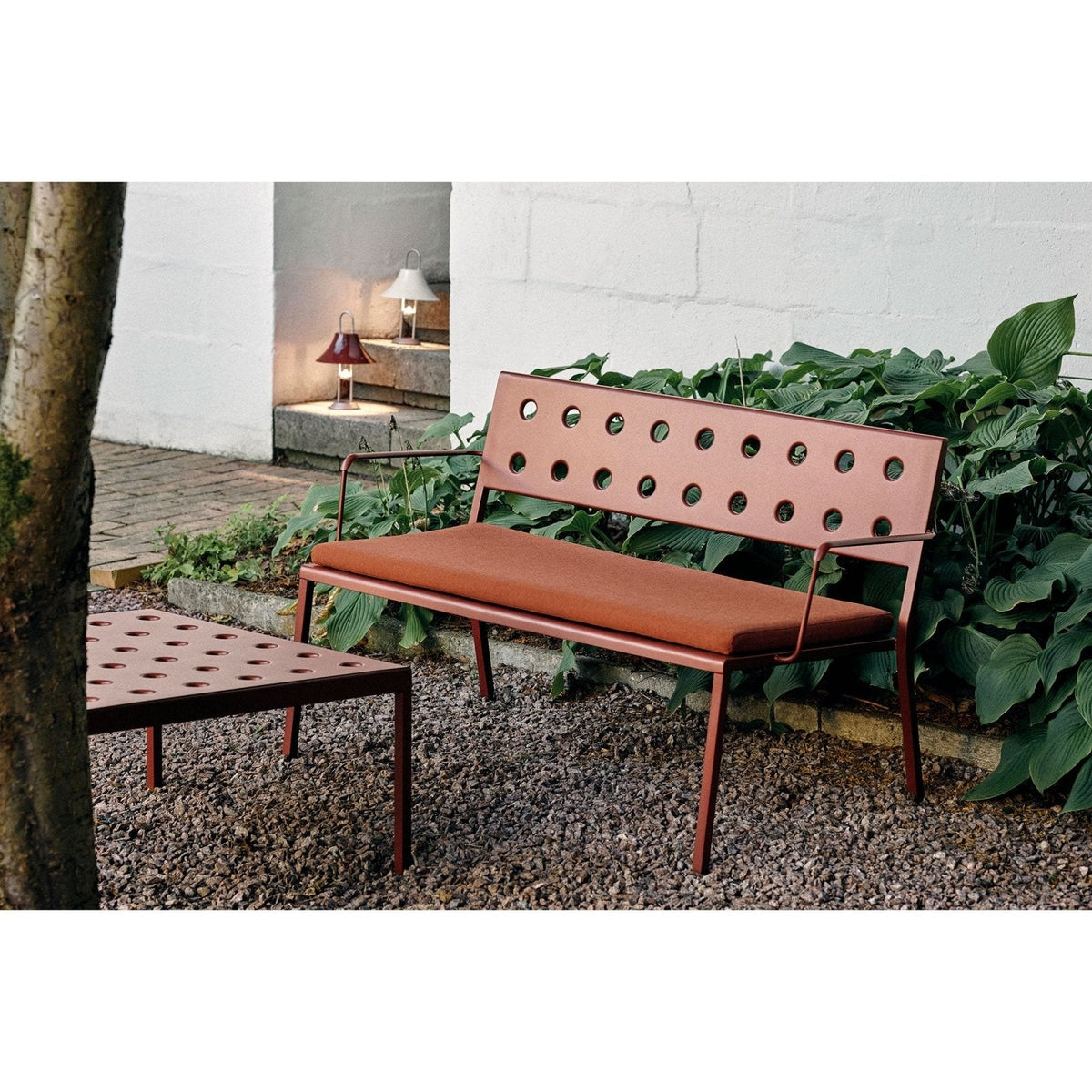 Adding extra comfort and functionality to the Balcony collection, the Balcony Cushion has a rectangular shape that fits the seat perfectly. The padded cushion features an anti-slip bottom to keep it securely in place. The fabric is Teflon®-coated for a water-repellent finish and has a high UV resistance, meaning it is fade-resistant with good colour fastness properties. The cushions are available in different sizes and colours and can be used all year round.
