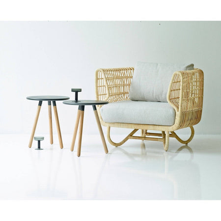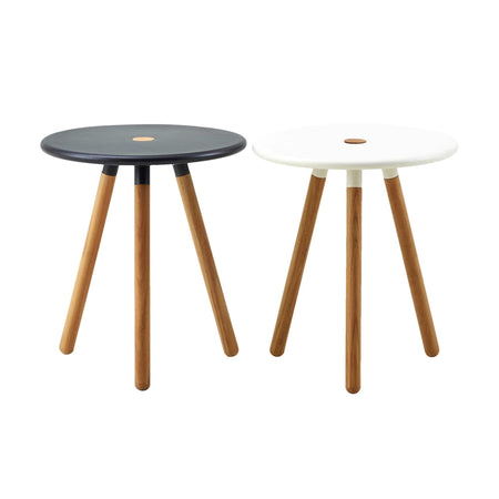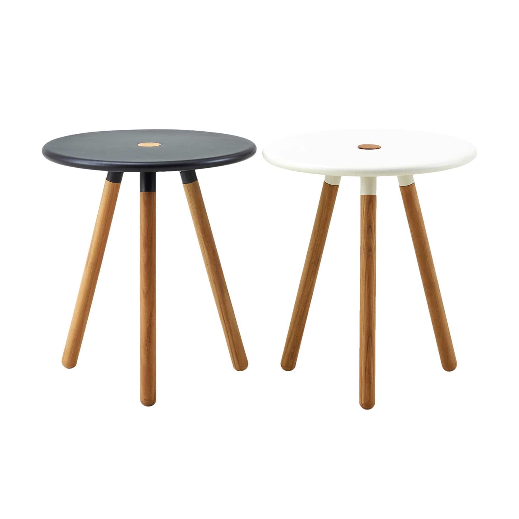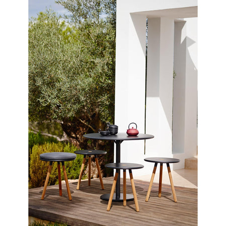 Choose between a black or white aluminium top combined with teak legs. The Area table/stool is designed by the Cane-line Design Team and can be used outdoors in all weathers.