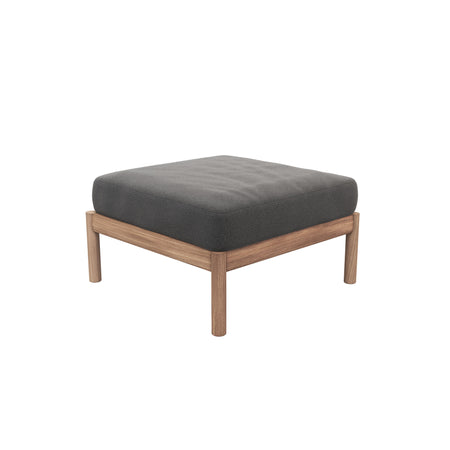 The pouf is crafted in solid teak, known for its natural durability and resistance to the elements.