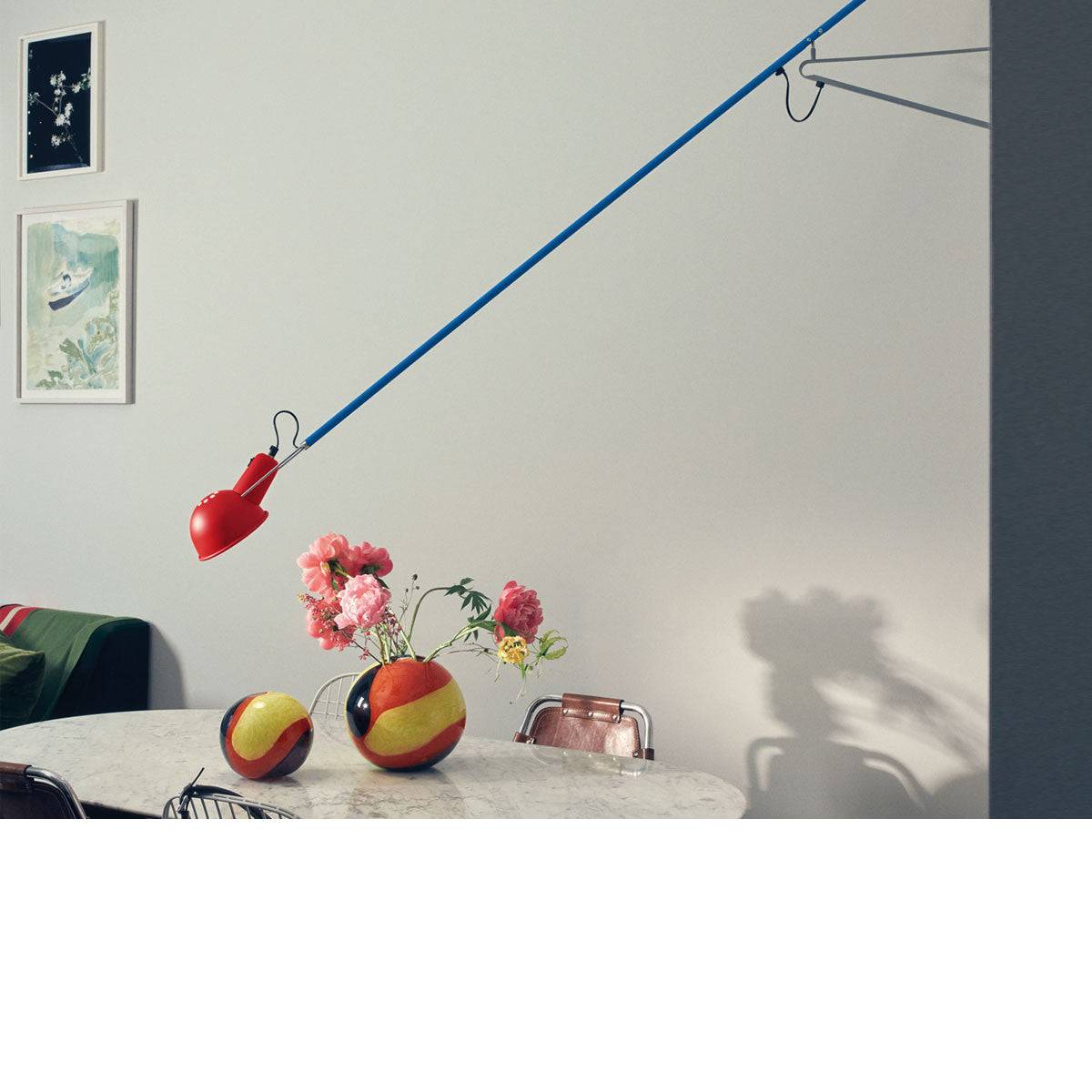 The shade, iterated in a vivid red tone casts direct light that can be oriented in any direction thanks to the lamps easy manoeuvrability, allowing 265 to provide excellent task lighting above a dining table, lounge chair or desk.