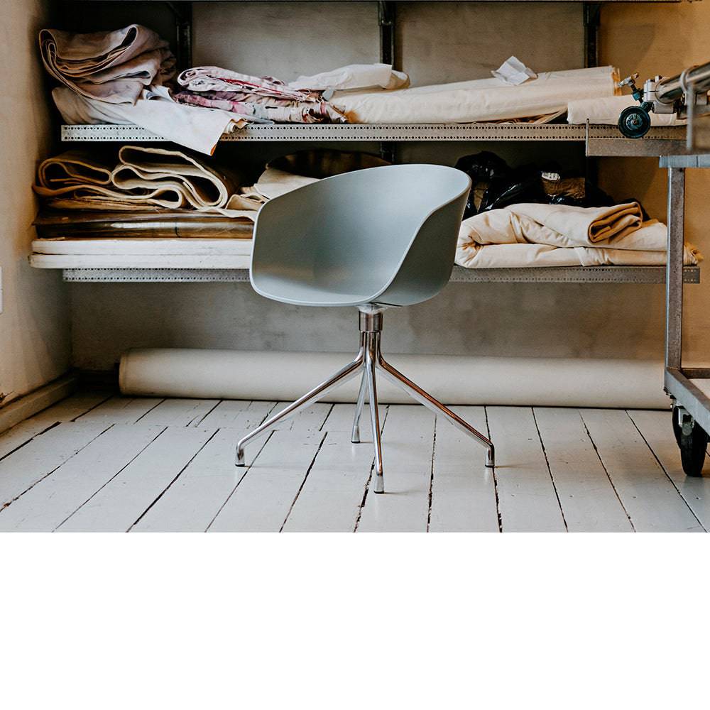 Featuring a swivel base in steel, the About A Chair AAC20 by HAY conveys a more formal expression than its wooden-legged counterparts from the series.