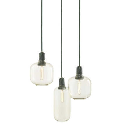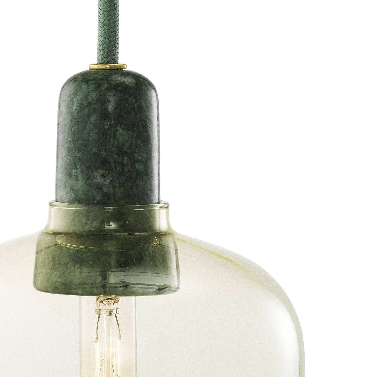 The idea for the lamp's shape came when the designer was restoring an old 60's radio at home. While searching for spare parts for the radio, he was captivated by the glow that emits from the tube amplifier. The simple oval shape and the glow of the bulb is an obvious reference to this, just as the name Amp refers to the English term; tube amplifier. The proportions for each lamp have been carefully designed. For example, the marble sockets of the two pendant lamps are smaller than the marble base of the table lamp to emphasise their different functions.