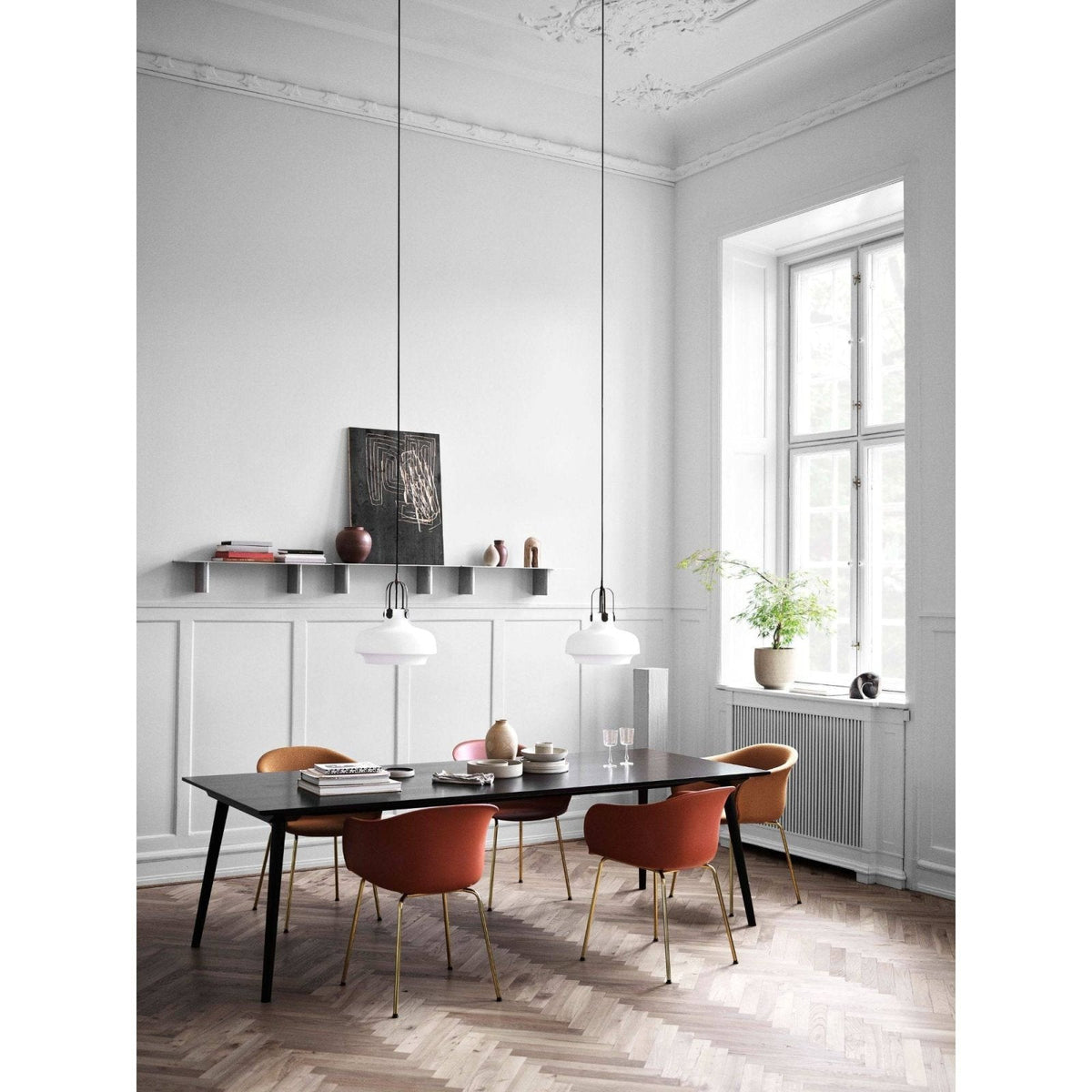 United with a slender coated steel frame in black or brass, the JH29 is a defining, modern dining chair, suitable for a range of interior spaces.