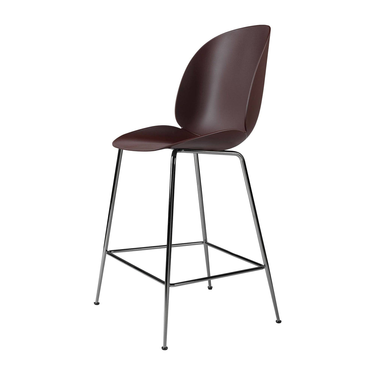 Looking closely at the anatomy of the beetle insect, characterised by its solid outside and soft inside, the front upholstered Beetle Counter Chair possesses all attributes. The front upholstered Beetle Counter Chair holds the same soft core as the fully upholstered version, giving it an outstanding comfort while the contrasting outer in polypropylene plastic functions as a protective shell. The Beetle can exude a personal adornment with an upholstery of your choice. Due to its unique design, the front upholstery can also be changed with time to give the chair a different expression and new life to the interior decoration. The height of the counter chair contributes to its light expression, which makes it blend into any interior naturally and with grace.