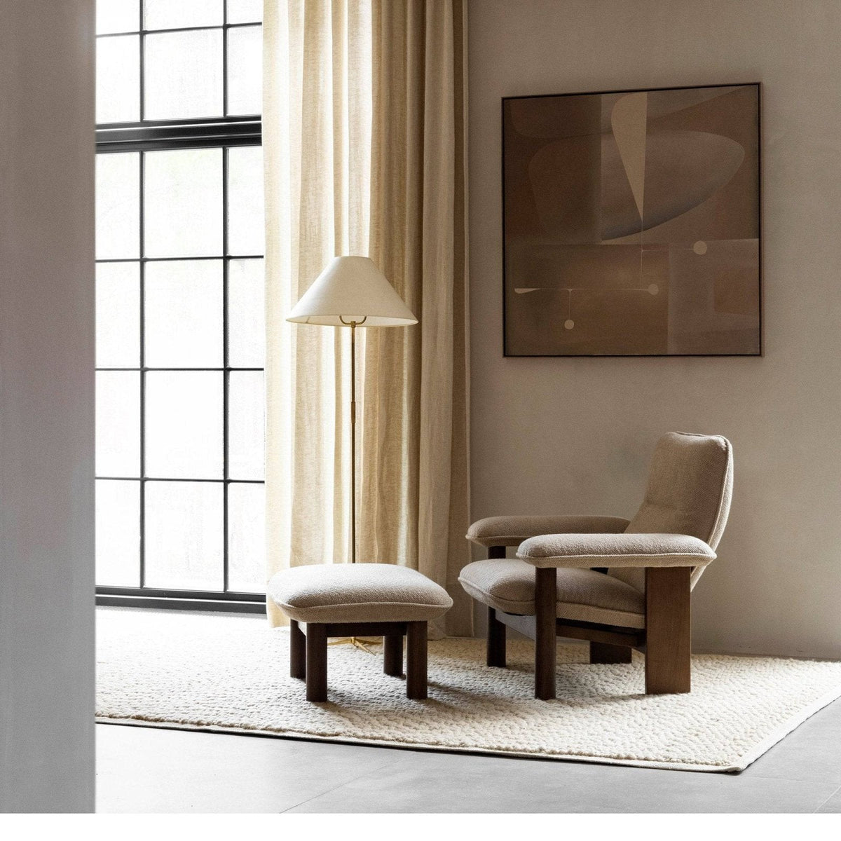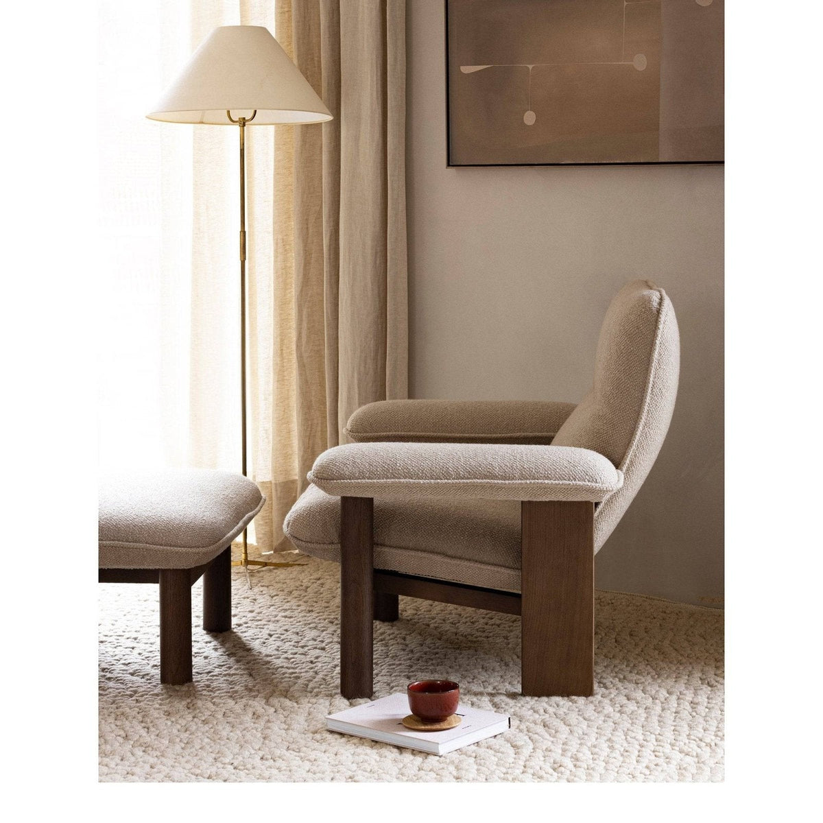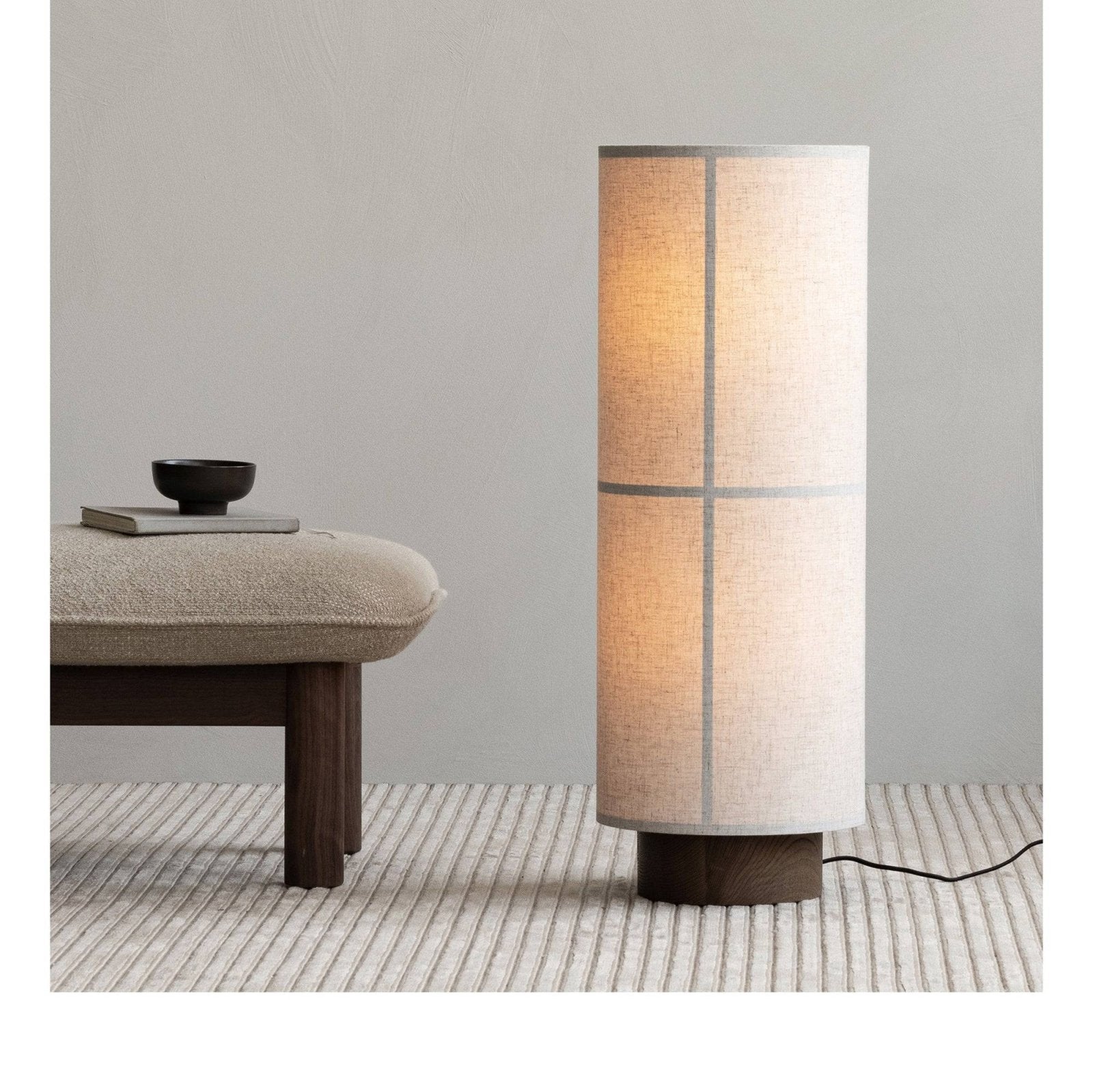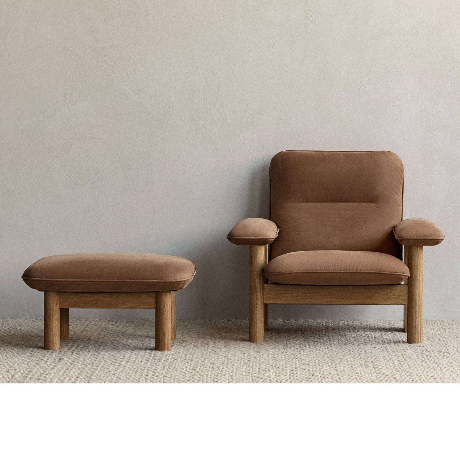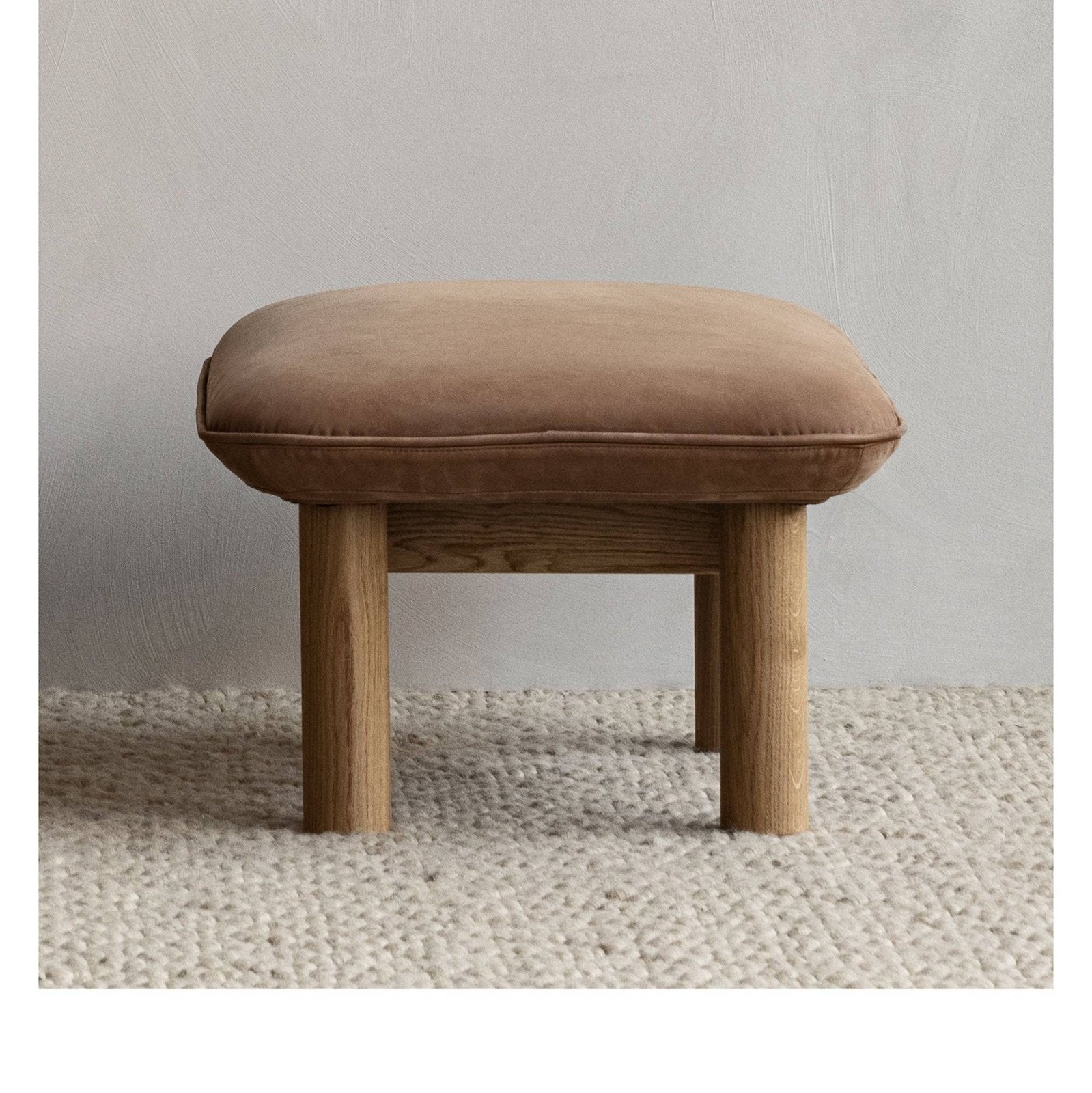 Designed for MENU by Anderssen & Voll, the Brasilia Ottoman is distinguished by its robust, cylindrical legs and softly curved cushion.