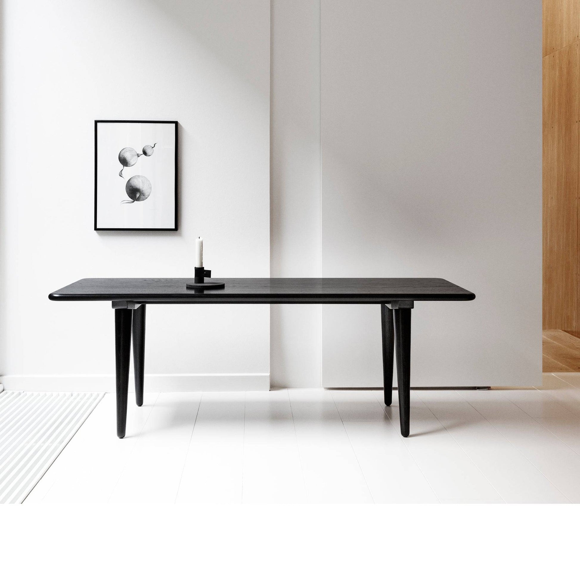 Elegant proportions: Four tapered legs tilt slightly outwards, giving the solid tabletop an appearance of lightness.
