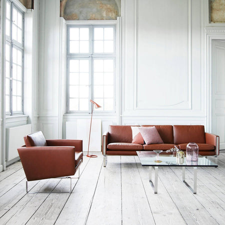 The CH101 Lounge Chair is one of Wegner’s finest works in stainless steel. Its sharp silhouette, elegant materials, and enduring comfort make it equally at home in modern living rooms, offices, and lounges.