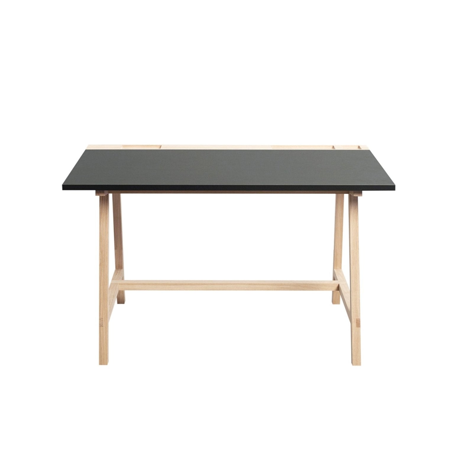 The desk is manufactured using practical linoleum sheeting. The supporting frame is made of solid oak and treated with the new product "Wood Care", so it requires a minimum of maintenance.