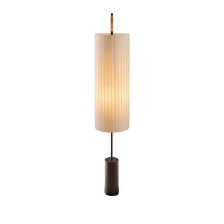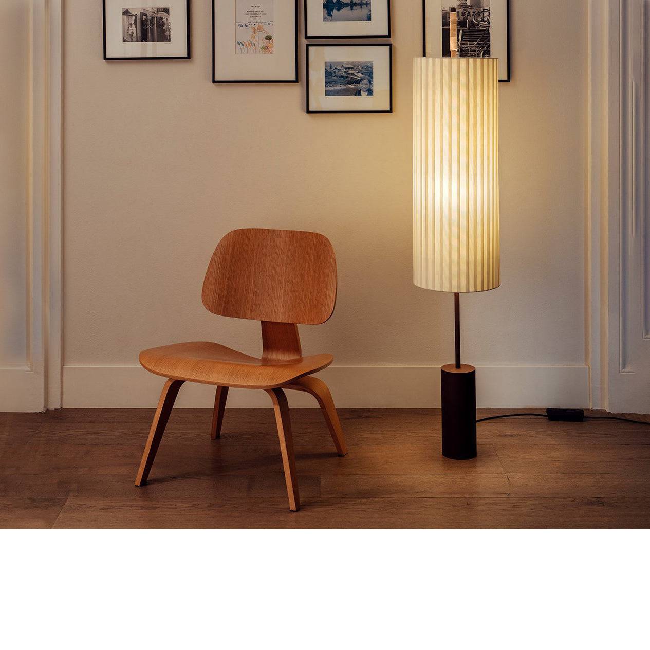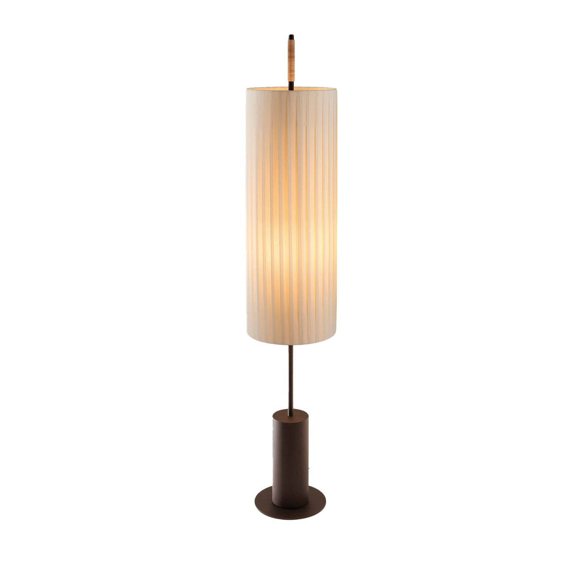 A delicate hand-made ribbon shade is offset by a sturdy bronze cylindrical base. The lamp stem is topped by a natural leather grip for a rustic feel. Reminiscent of humanity’s oldest Greek columns, Dórica is a symbol of strength. An optional, wider stabilising base is also available for use in busy areas.