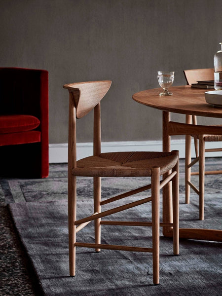 The 1956 Drawn chair by Hvidt & Mølgaard stands out as a definitive piece of Danish design Relying upon traditional craftsmanship techniques and built out of organic materials, it brings a sense of wholesome honesty to any space Available in oak or walnut, it comes in two versions: a wider model with arm rests, or one without.