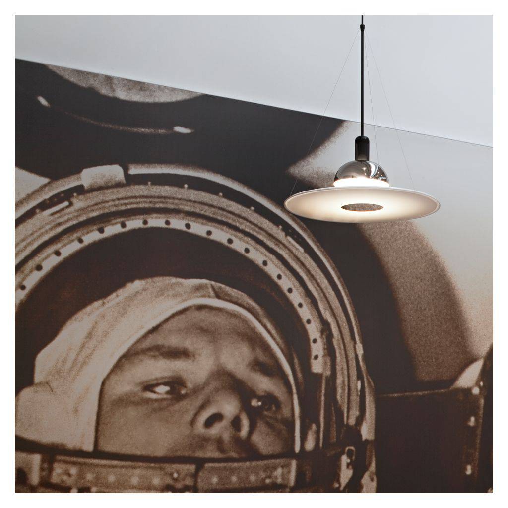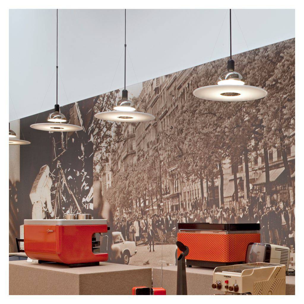 Inspired by the iconic park companion, the Frisbi Pendant Light offers three types of illumination, diffused, reflected and direct, in Castiglioni’s signature barely-there aesthetic.