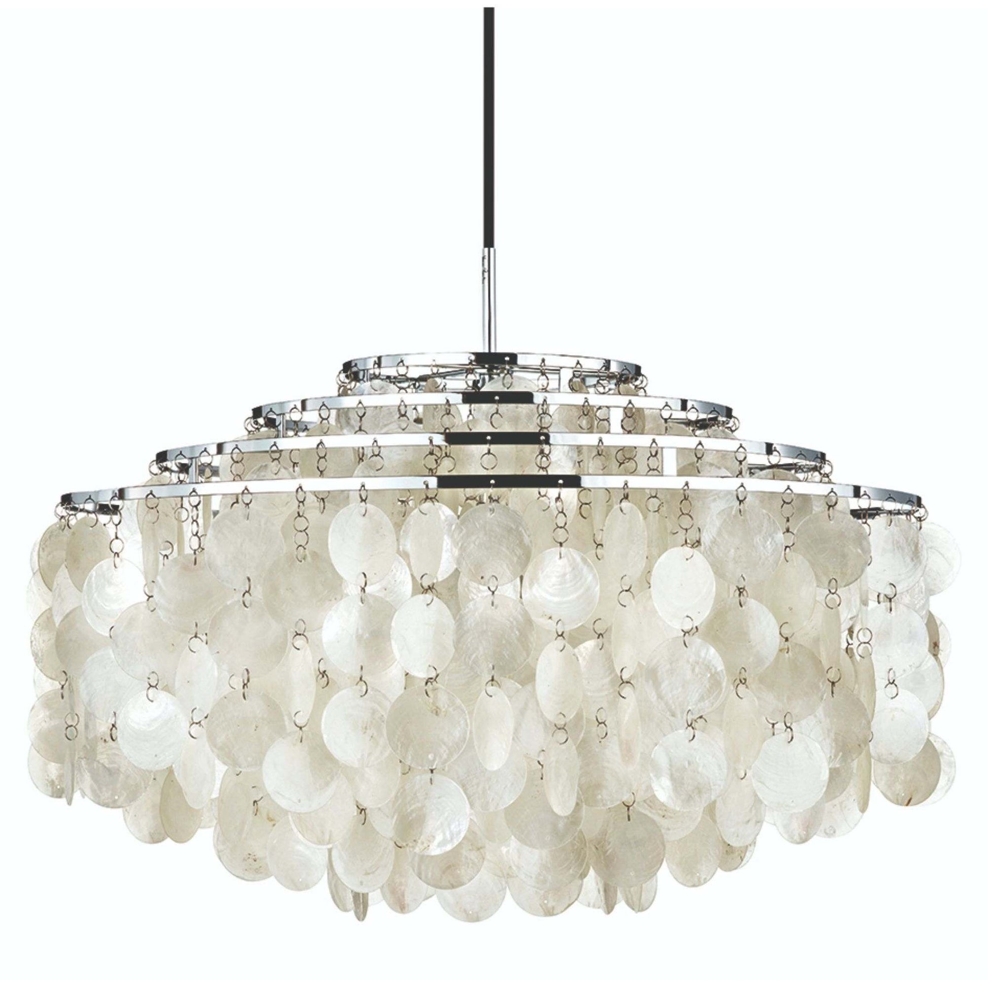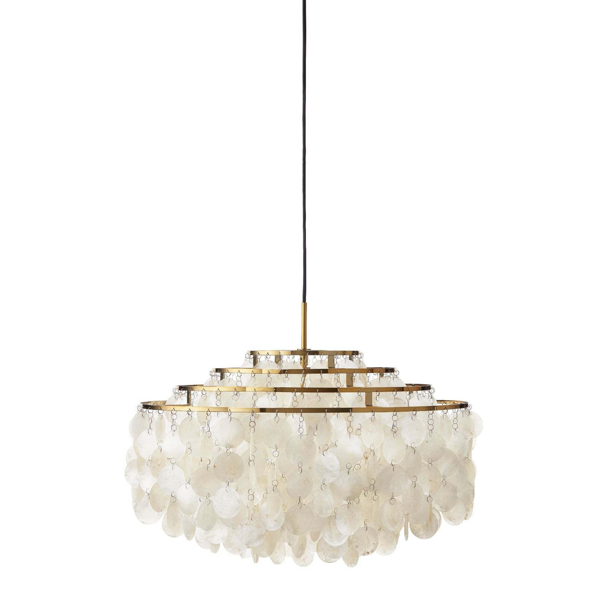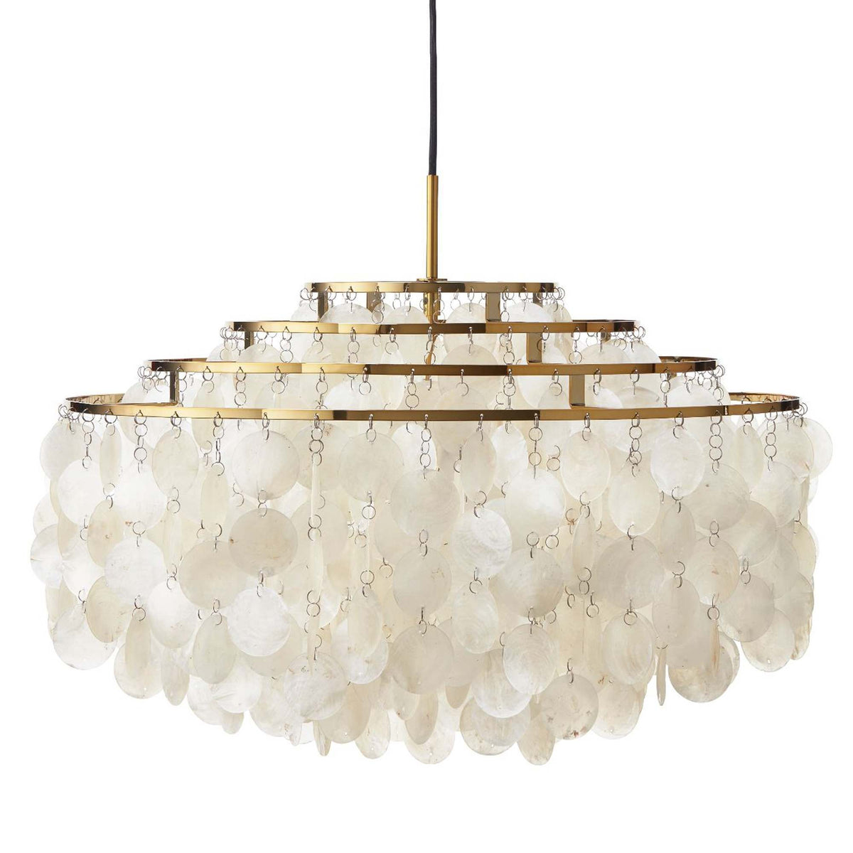 Pendant with discs on four ring metal frame. Discs are connected with small rings. Incl. ceiling canopy.