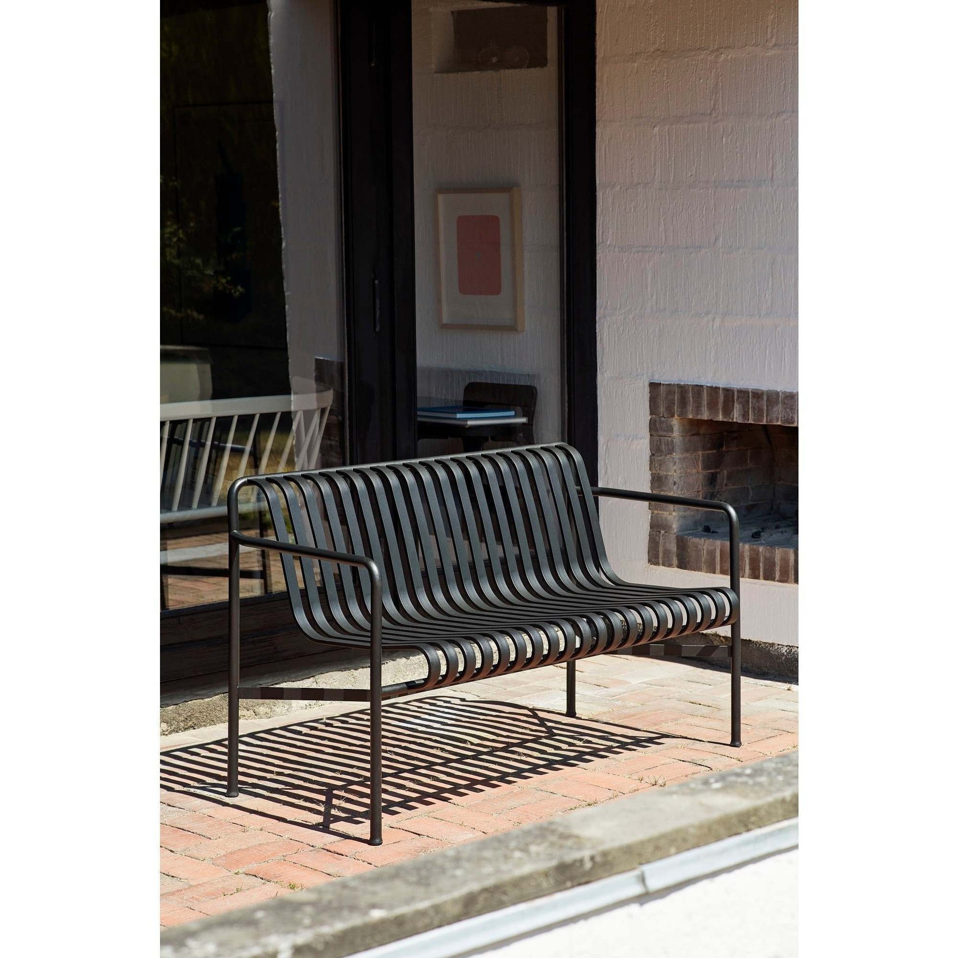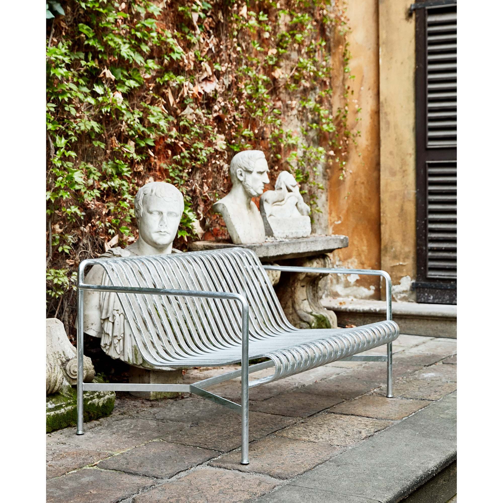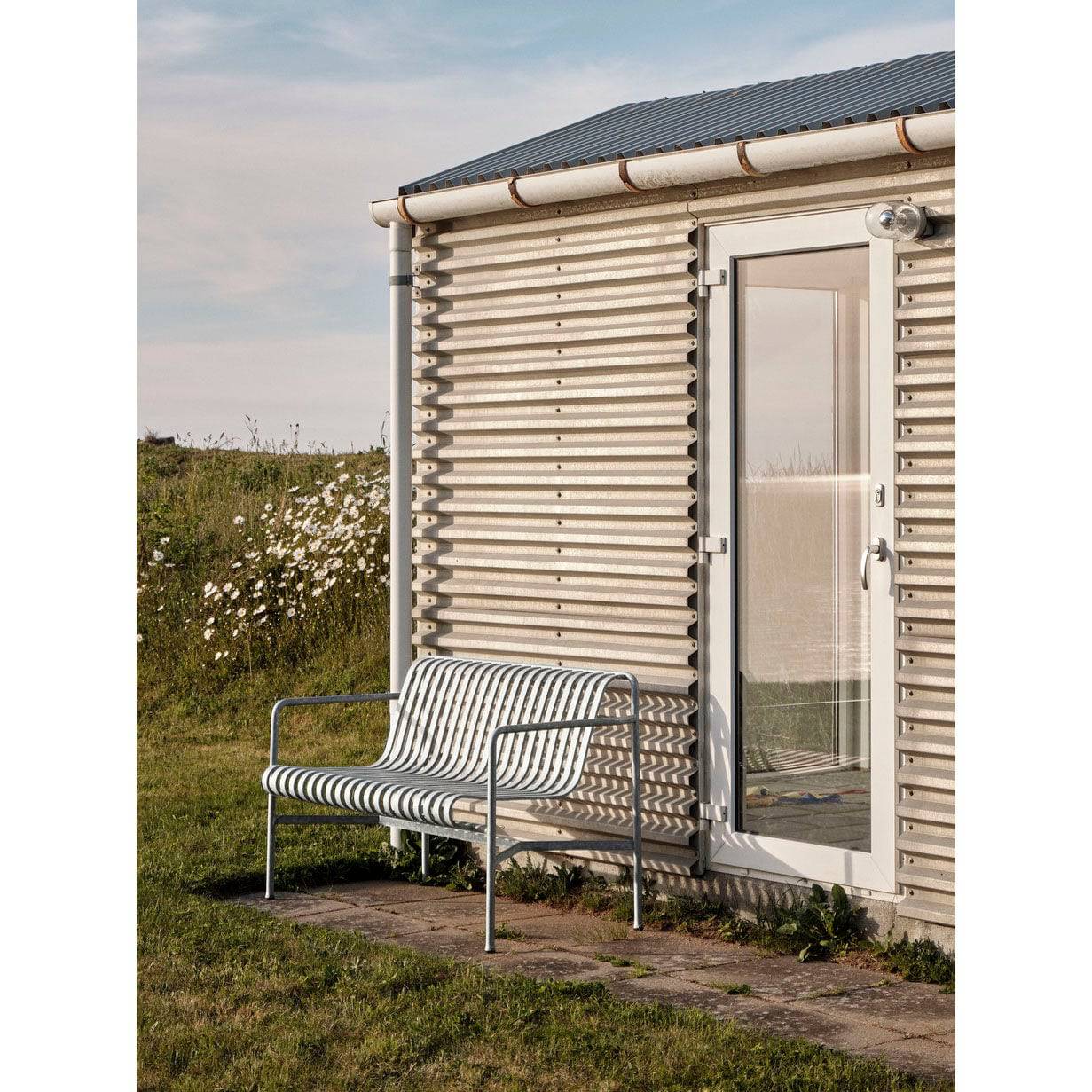 The bench serves as an ideal piece of furniture for outdoor spaces.