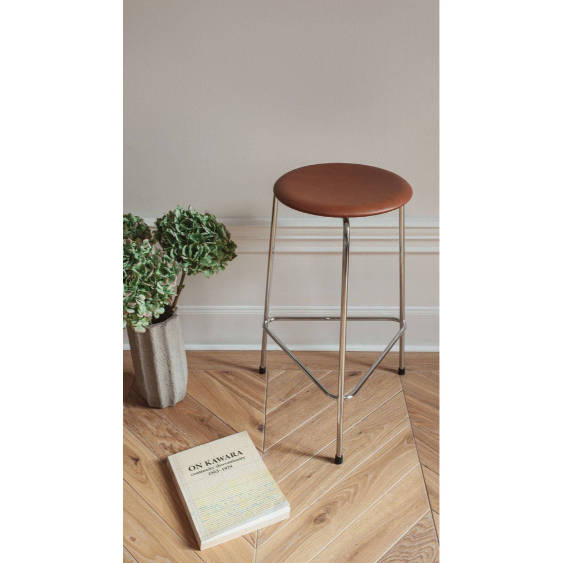 The High Dot™ Stool from Fritz Hansen is an elevated version of Arne Jacobsen’s iconic Dot™ design, developed for bar seating and high dining tables. With its warm leather seat and polished chrome base, it embodies simplicity, elegance, and functionality in perfect balance. Modern and minimal yet sophisticated, the High Dot™ has been used in several of Jacobsen’s most significant projects, making it a piece rooted in both design history and contemporary living.