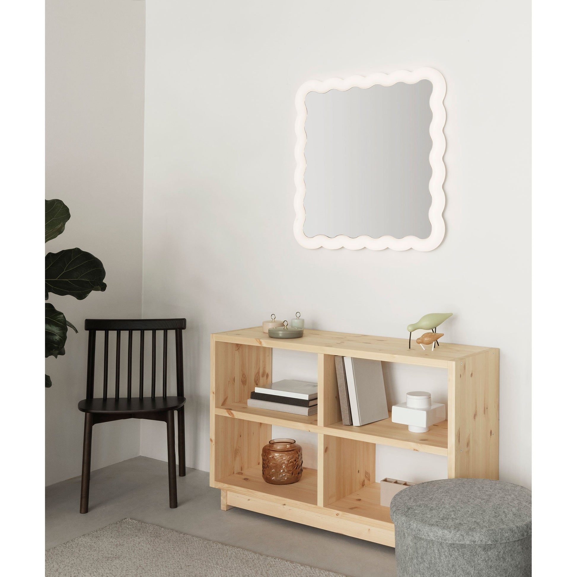 Illu is a stunning mirror distinguished by its unique, wavy frame and built-in dimmable LED light. An eye-catching design, that combines both decorative and functional elements, making it an ehancing addition to any room in the home. Illu presents an unconventional mirror with a playful expression and an intriguing frame that illuminates the mirror itself, adding character and finesse to the design. The winding frame is designed with a specific thickness to make room for the integrated lighting, ensuring the right ambiance. When lit, the frame becomes an illumination, presenting a distinct character that enchantingly transforms the mirror.