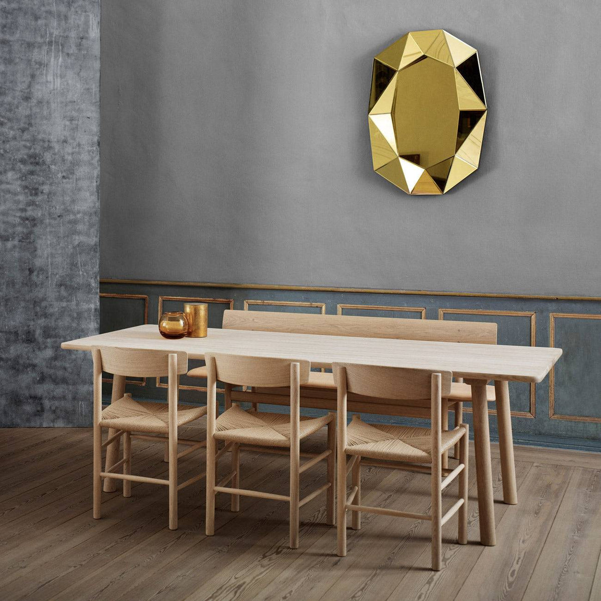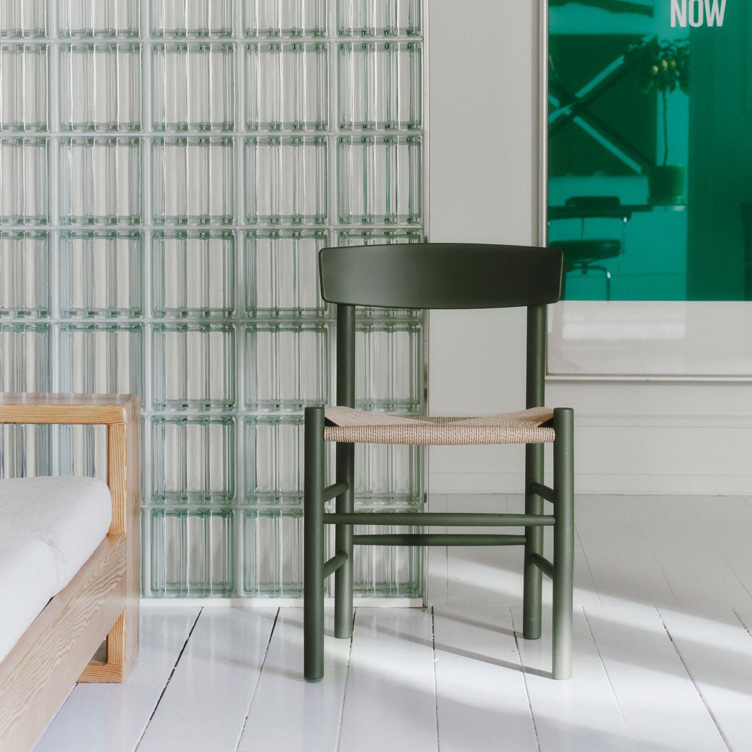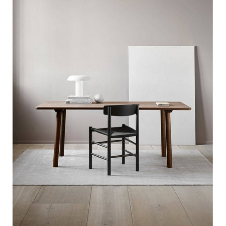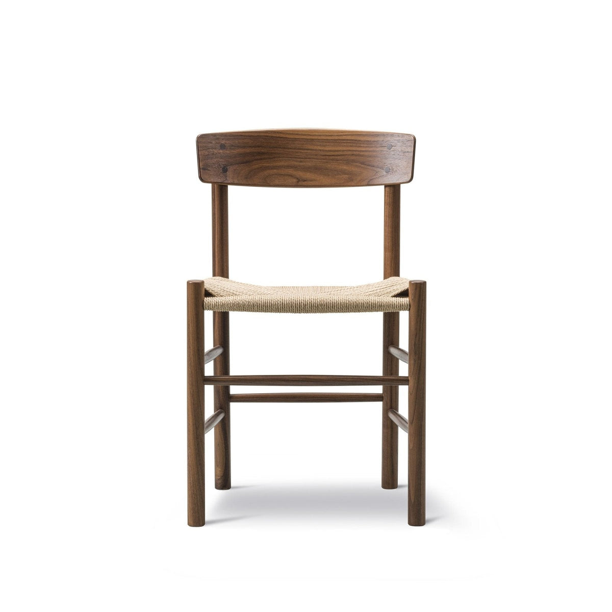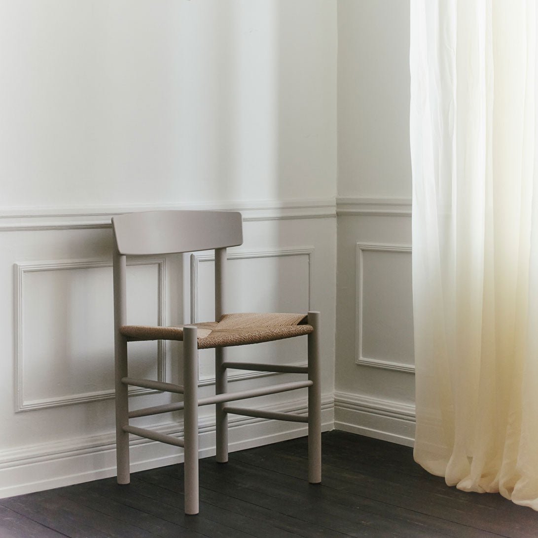 J39 is the obvious choice for everything from canteens to conference halls, churches to private homes, and is popularly known as the People's Chair. This simple, yet unique chair was inspired by Mogensen's mentor, Kaare Klint, as well as American Shaker furniture. The curved backrest and hand-woven seat make the J39 a comfortable dining chair in an aesthetically pleasing quality.