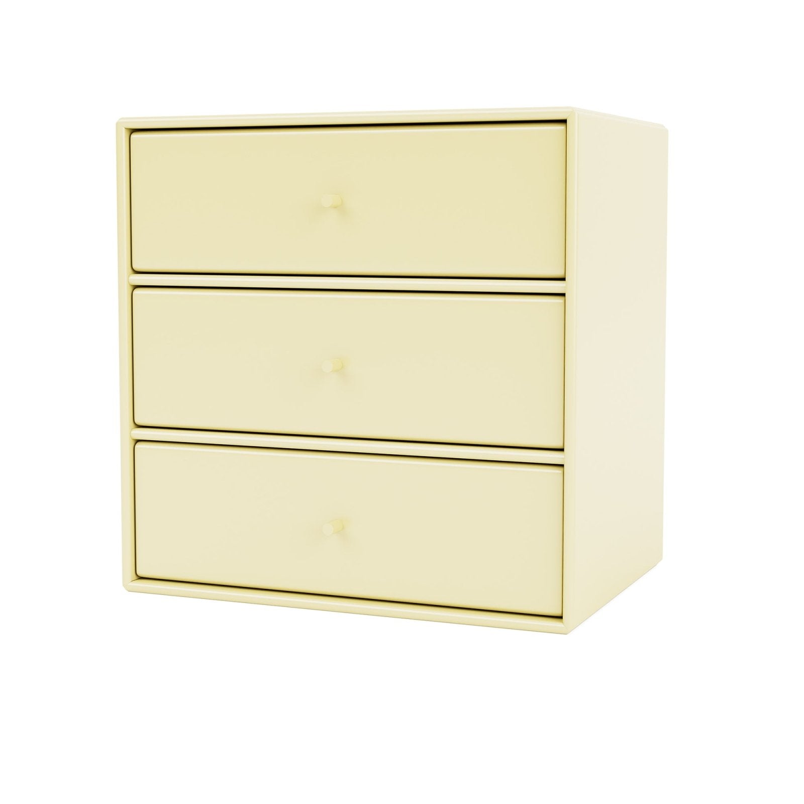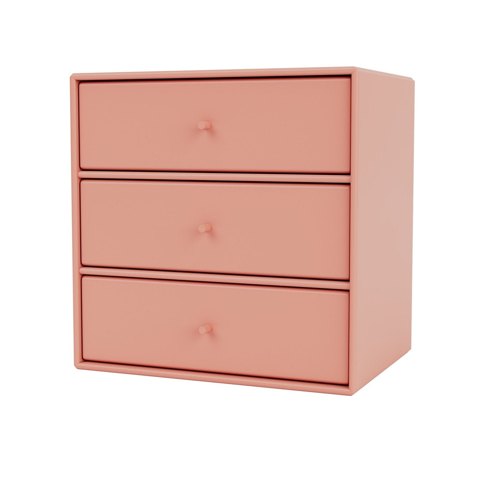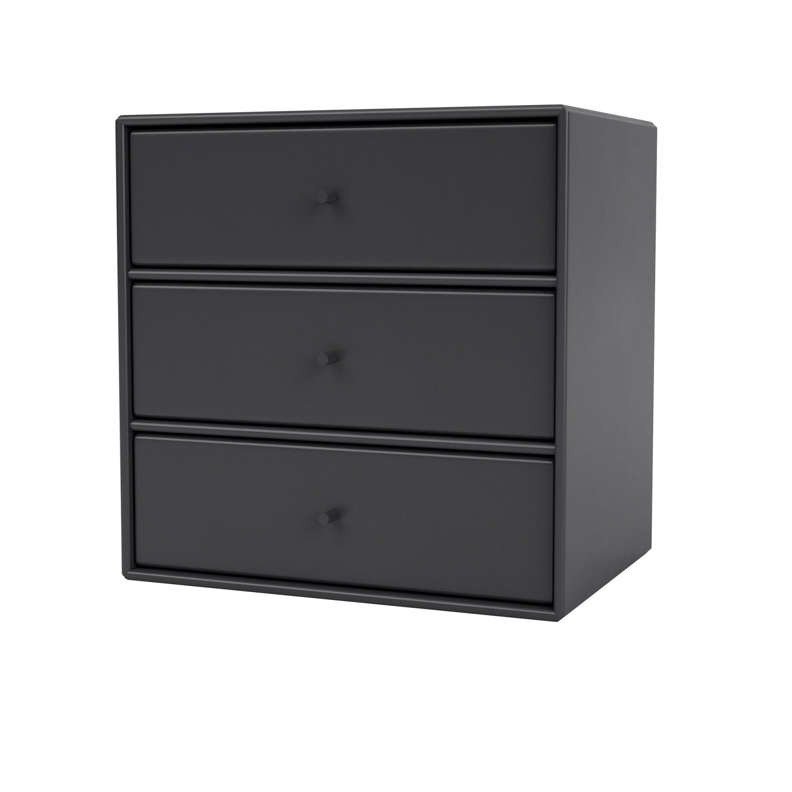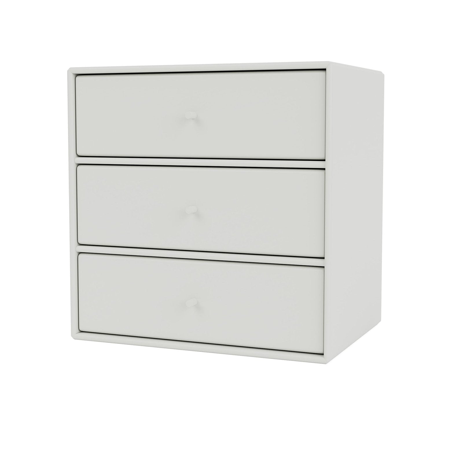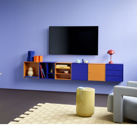The trays drawers are white with a front lacquered in the same colour as the corpus and shelves of the module. Choose the module in one of the series' 10 selected lacquer colours from the Montana colour palette.