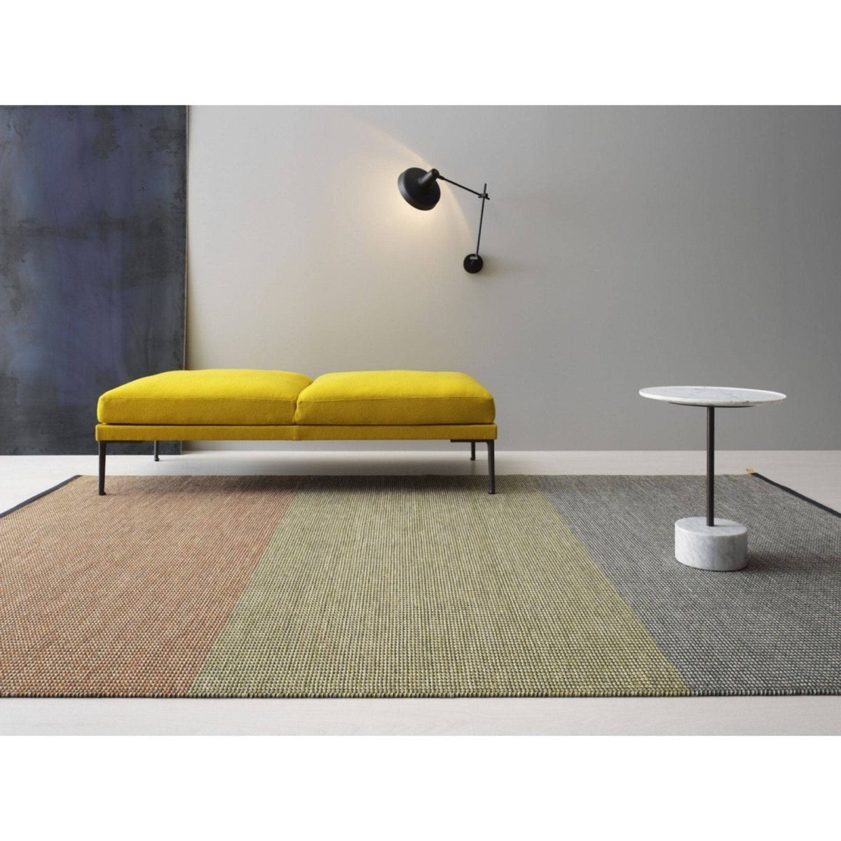 When designer Maja Johansson created the rug Othello, she mixed influences from industrial materials. Braided rope and surfaces of bags and shoes create a small but clear pattern image. The woven rug is made up of three different coloured surfaces in equal sections, where one colour is allowed to dominate each specific section. The rug is available in three variants, Mandarin Garden, Sounds of Pink and Turquois Delight. These are also available as a single-color option. The impression is eclectically playful and classically clean at the same time.