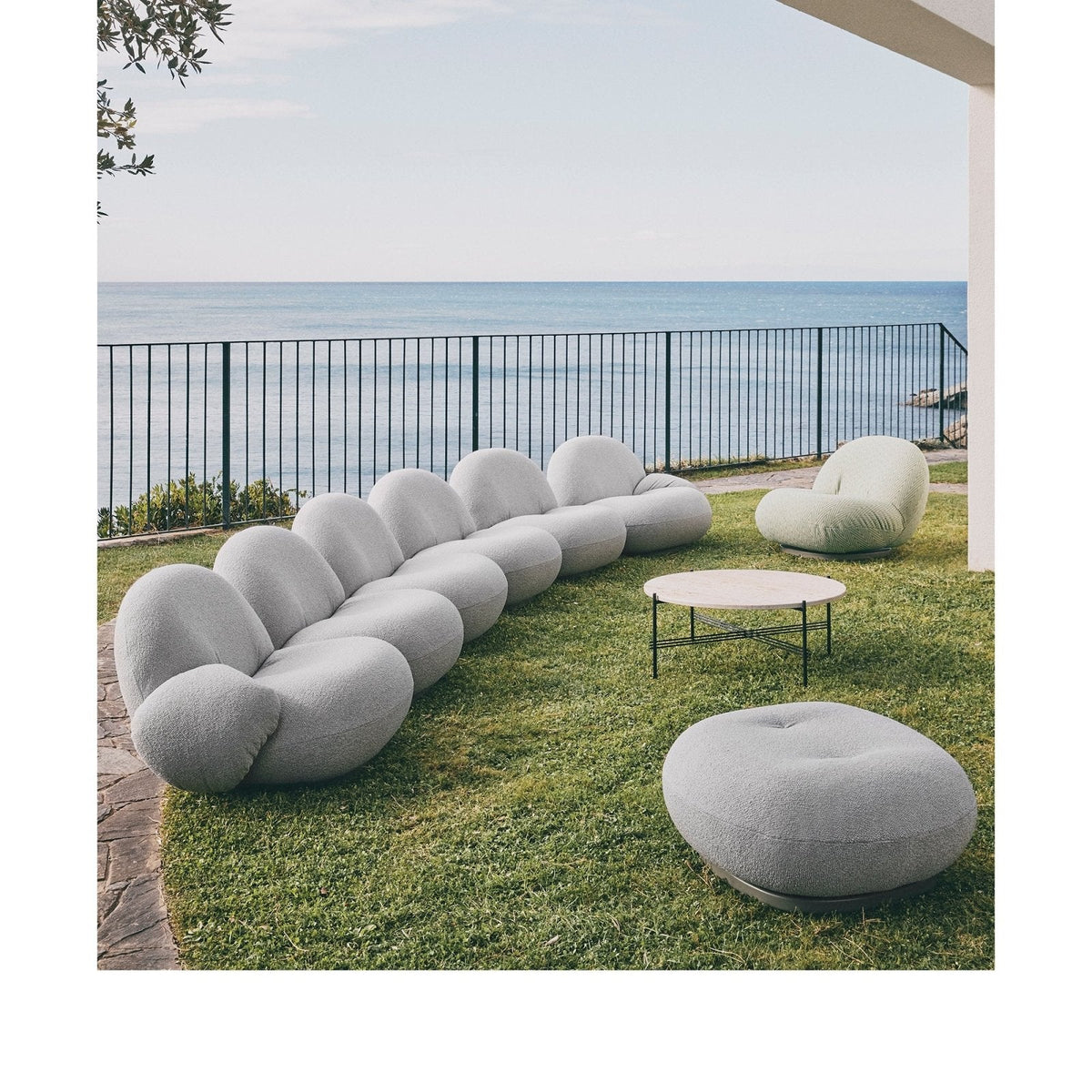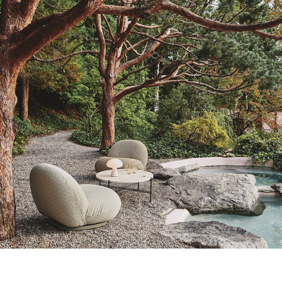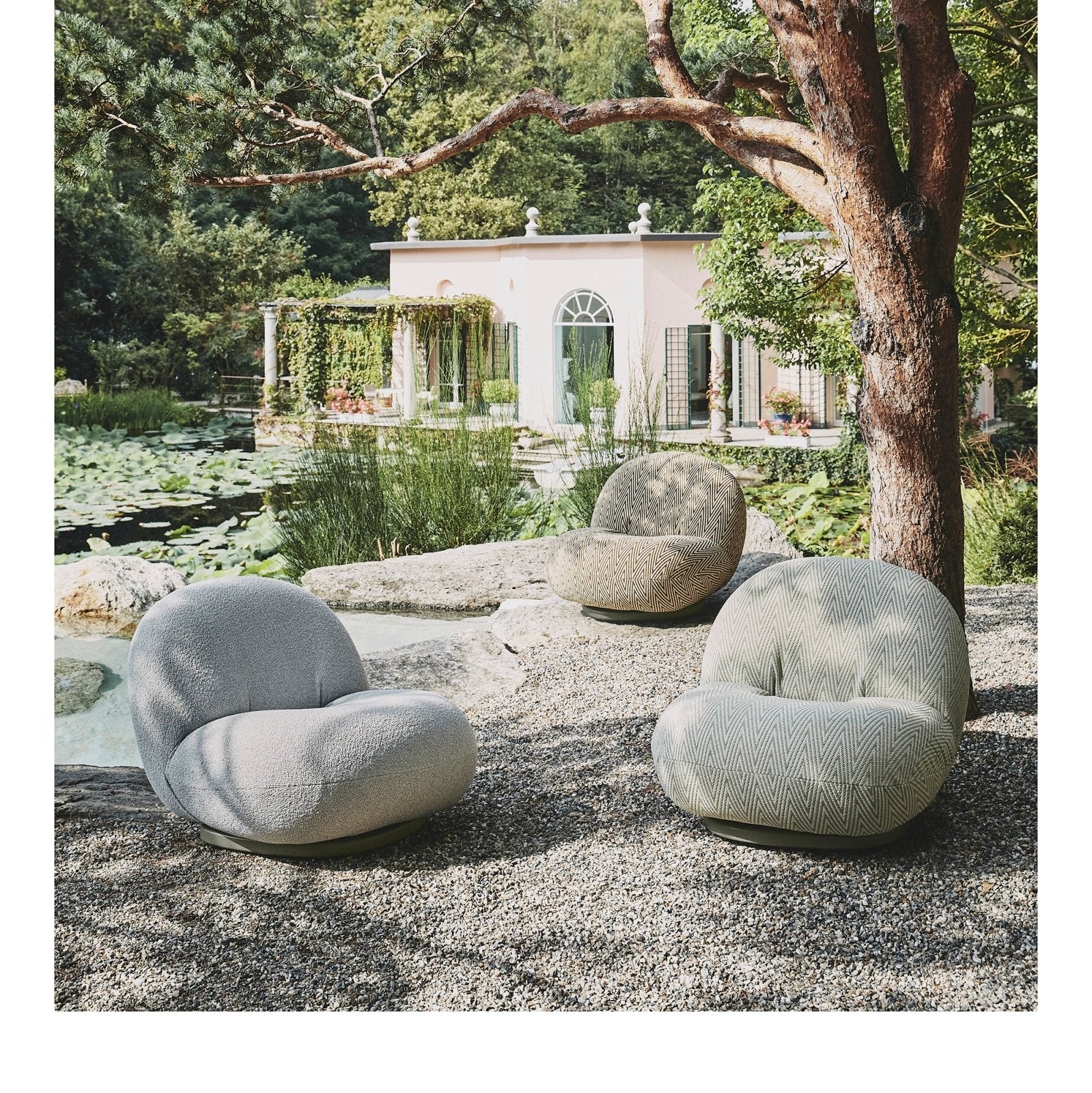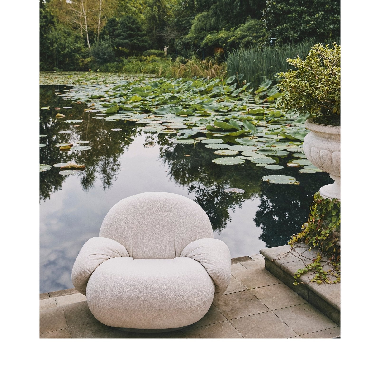 Pierre Paulin’s pioneering seating concept for GUBI features a specially developed membrane interlayer that is both water-resistant and breathable to ensure quick drying after exposure to rain while maintaining the indulgent comfort of the iconic original.