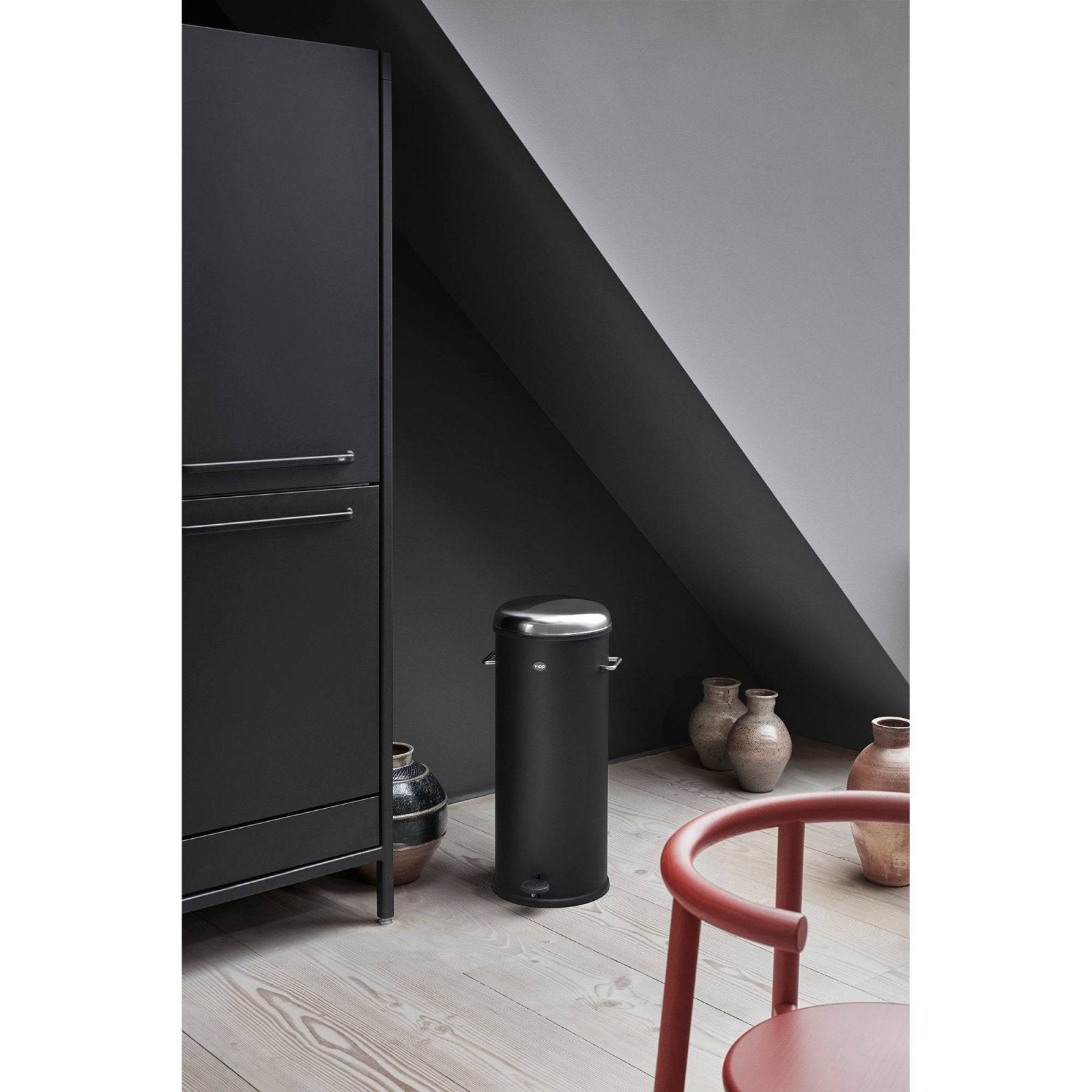 The Vipp17 pedal bin is the largest of the Vipp bins, ideal for use in kitchens. This pedal bin is equipped with a removable inner bin, a lid that ensures air-tight closure, and a damper mechanism that provides smooth closing of the lid. A rubber ring at the base protects floors.